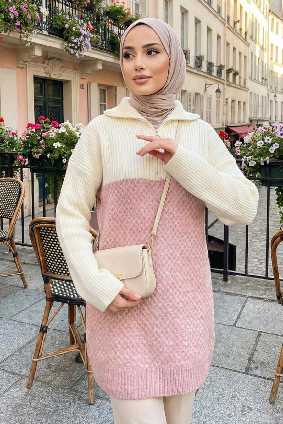 Ürün Özelliği: Dik yaka, uzun kollu, yakası fermuarlı ve blok renklidir.