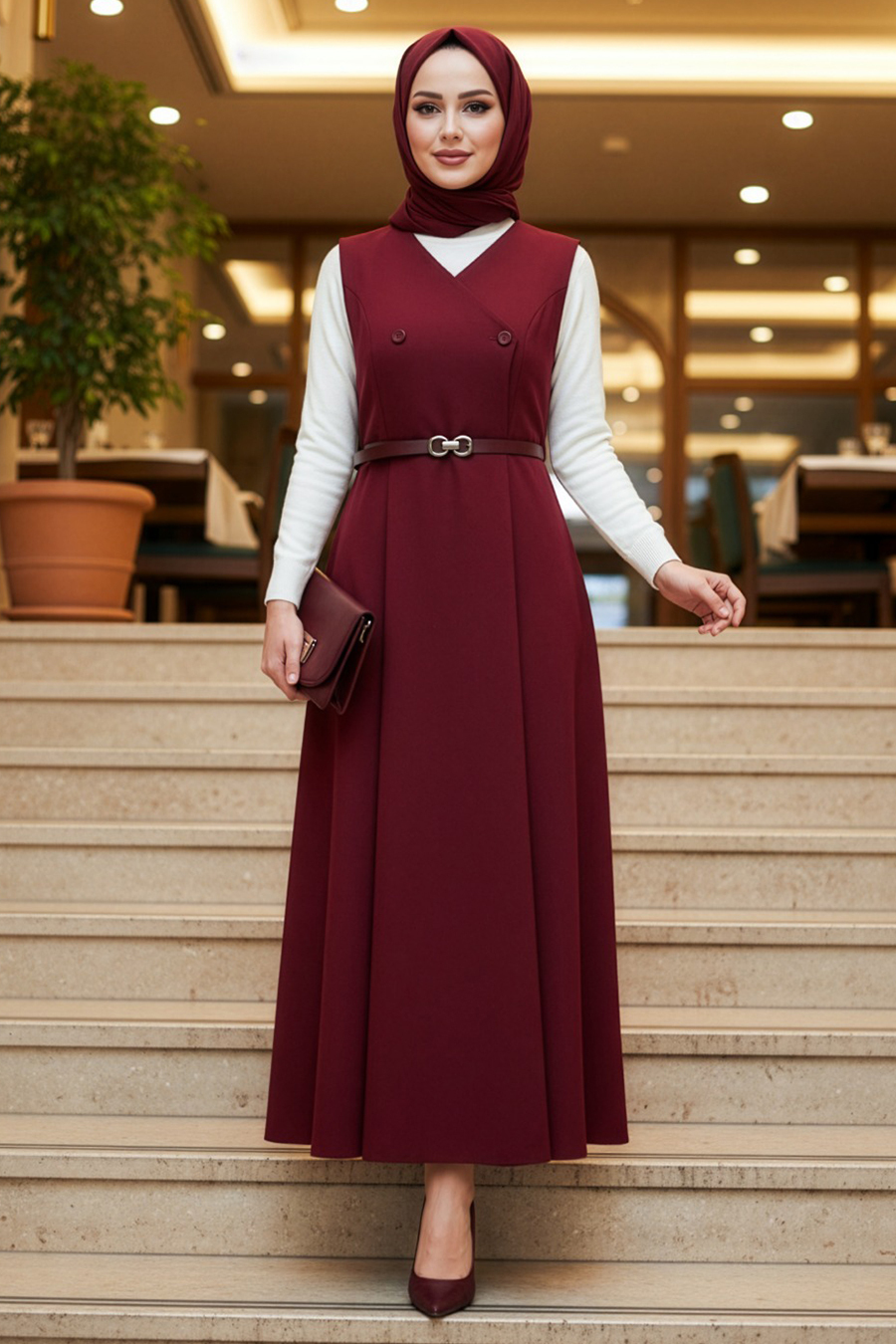 Kumaş Özelliği: %80 Polyester %20 Pamuklu kumaştan üretilmiştir.Ürün Özelliği: V yaka, sıfır kol, düğme detaylı ve tokalı kemerlidir.