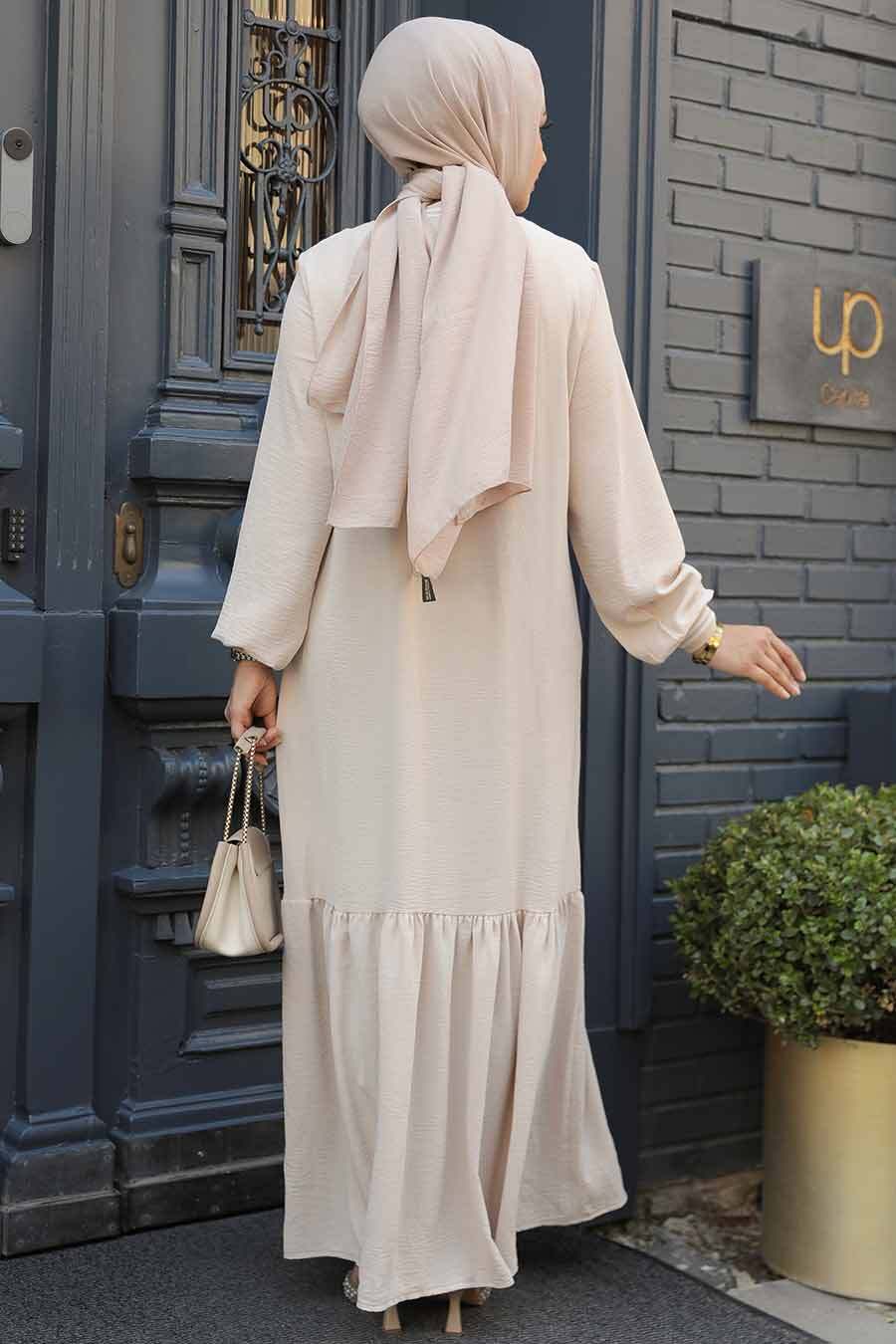 Ürün Boyu: 135 cmÜrün Rengi: Bej- Life Style çekimlerden dolayı ürün renginde ton farkı olabilir Sipariş İçeriği: Bu ürün kombin değildir. Sadece elbiseden oluşmaktadır.Numune Bedeni: 38Yıkama: 30 derecede sıktırmadan yıkanabilir.Manken Ölçüleri Boy: 165 cm