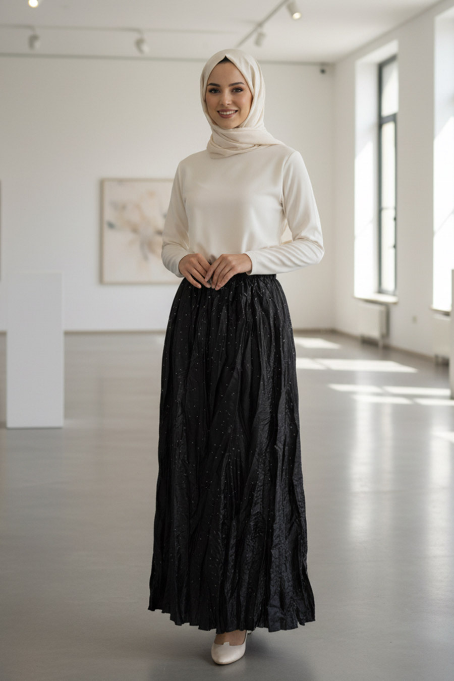 Buruşuk Siyah Tesettür Etek 9227S