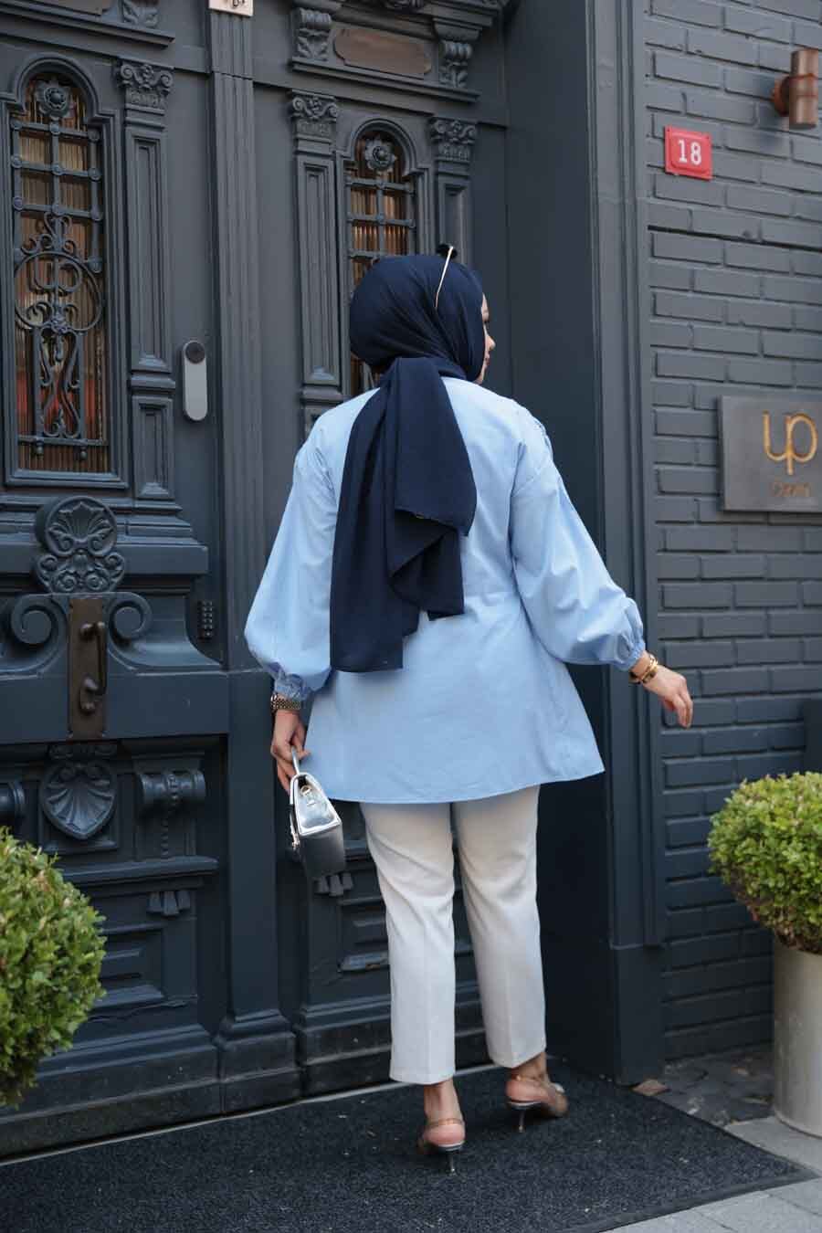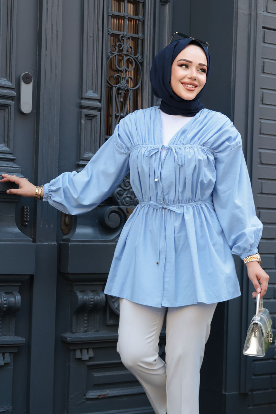 Büzgü Detaylı Bebek Mavisi Tesettür Tunik 101042BM