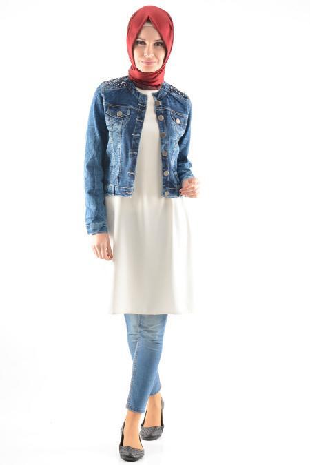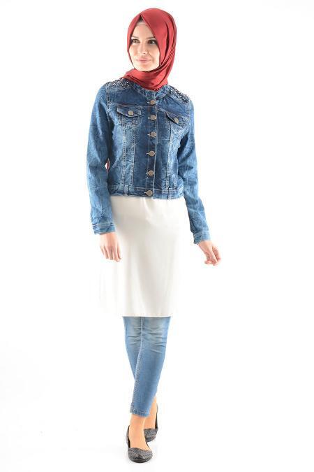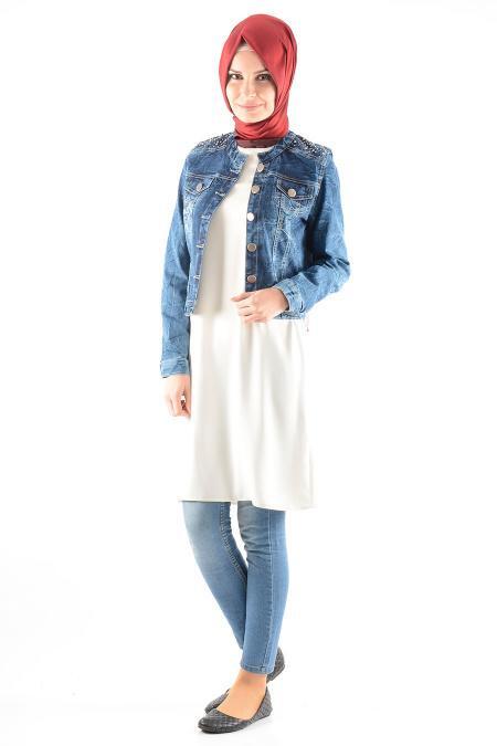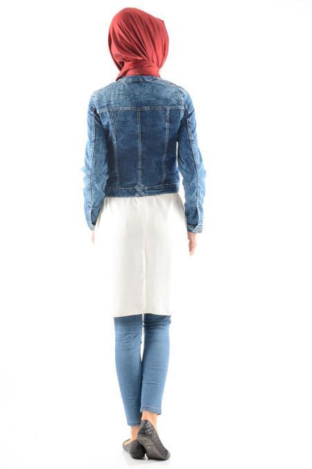 By Kayalar - Mavi Kot Tesettür Ceket 7654M