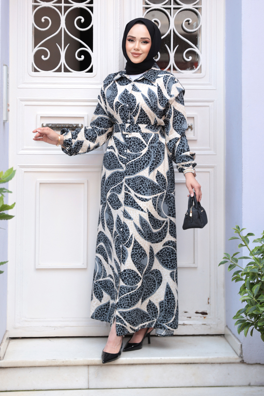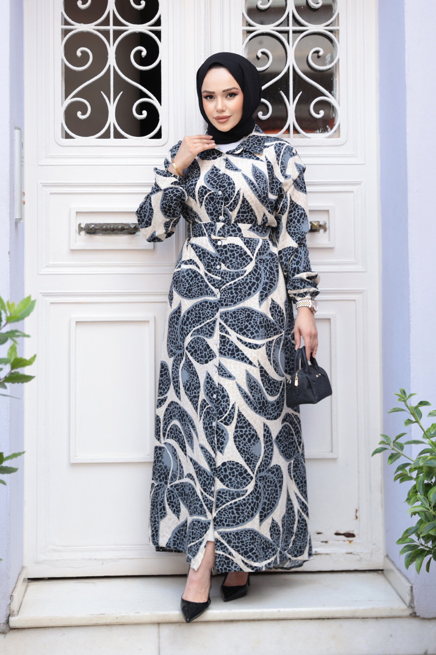 Ürün Özelliği: Klasik yaka, uzun kollu, kol ucu lastikli, desenli, ön ortadan düğmeli ve tokalı kemerlidir.