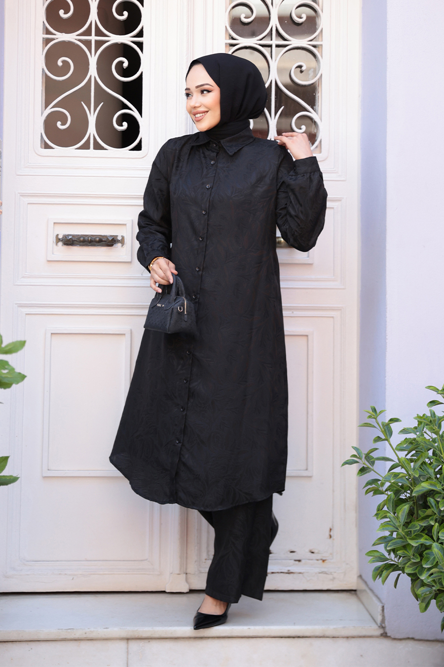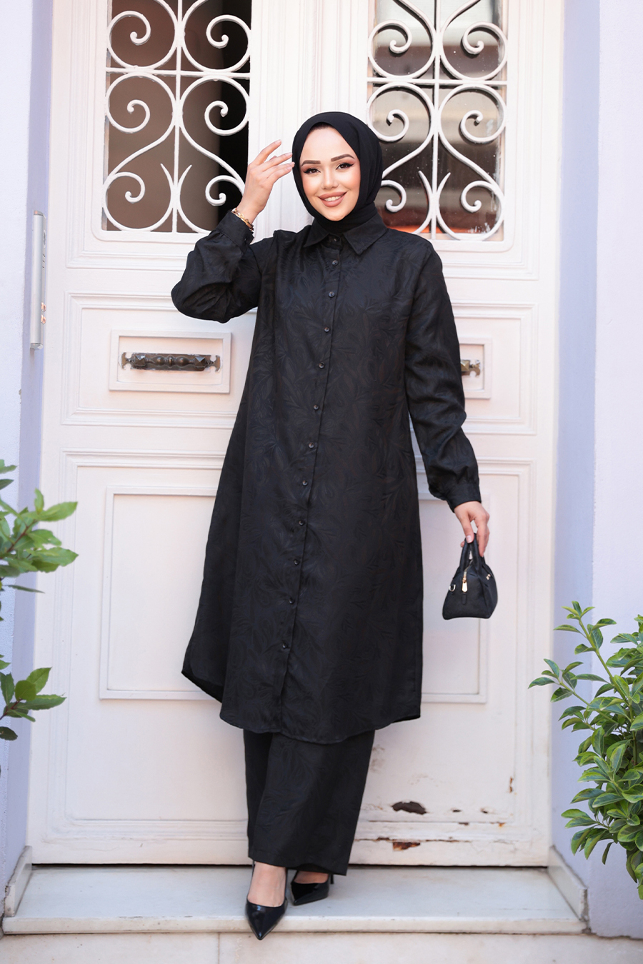Ürün Özelliği: Klasik yaka, uzun kollu, manşetli, ön ortadan düğmeli, desenli, pantolon belden lastikli ve geniş paçadır.