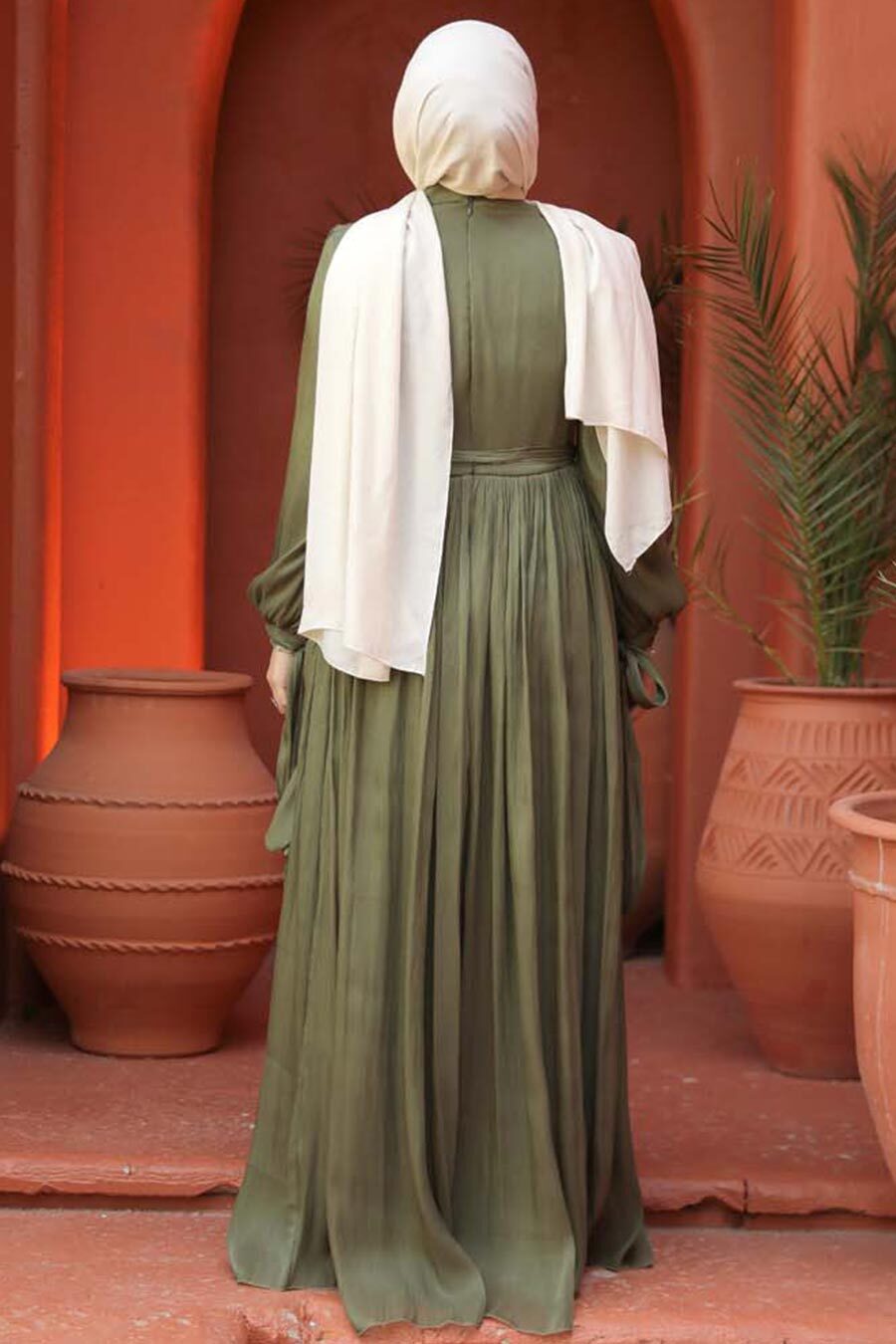 Ürün standart kalıp olup normalde kullandığınız bedeni sipariş vermeniz tavsiye olunur. Özel günler, düğün, nişan, söz, davet ve mezuniyet için aradığınız tesettürlü abiye elbisedir.