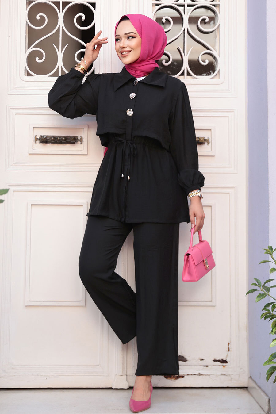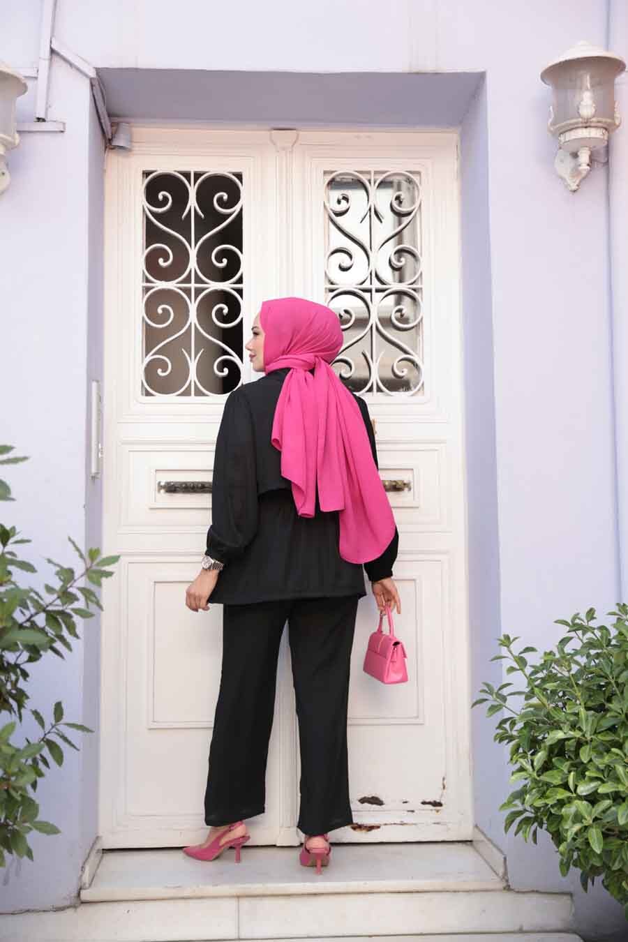 Düğme Detaylı Siyah Tesettür İkili Takım 40391S