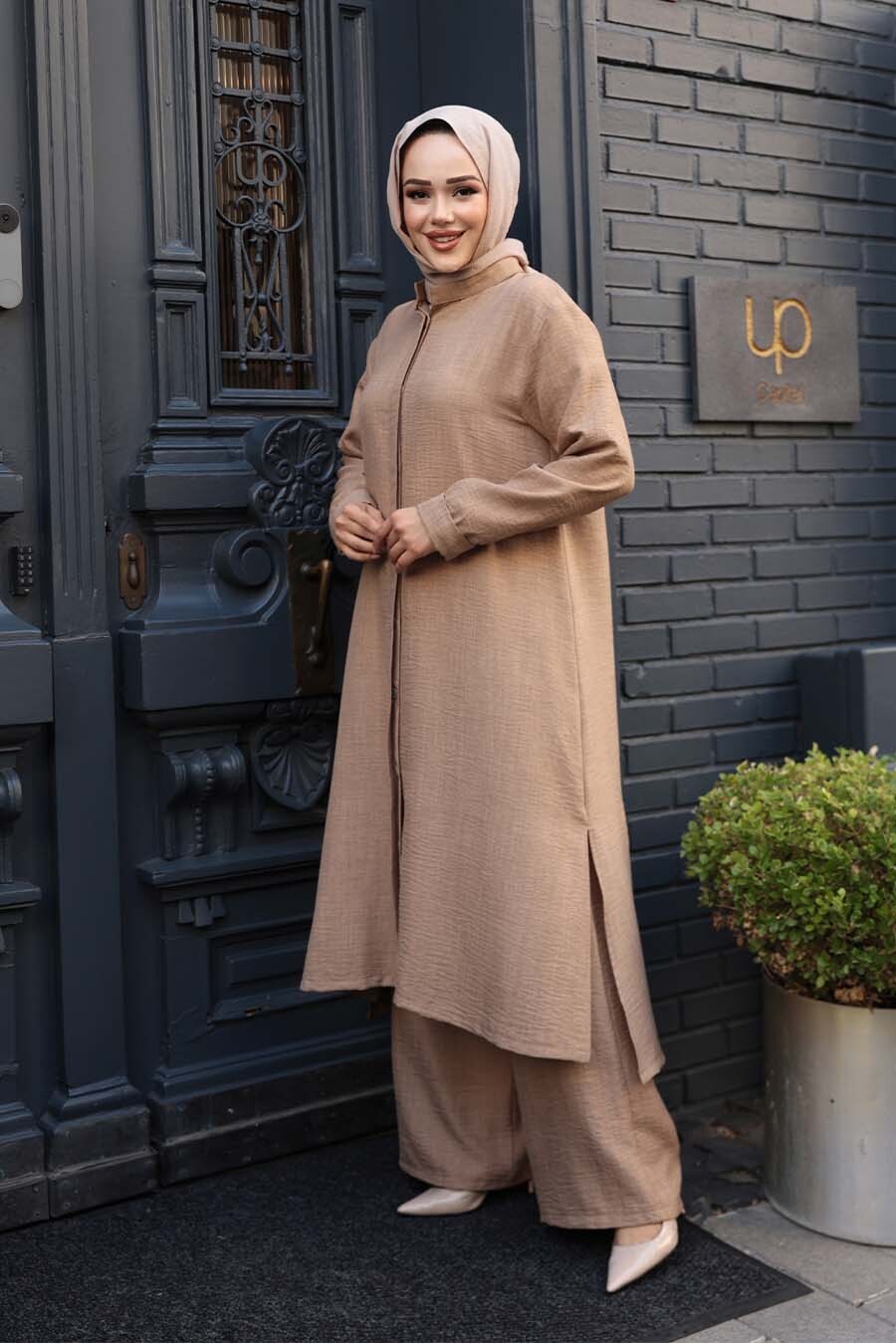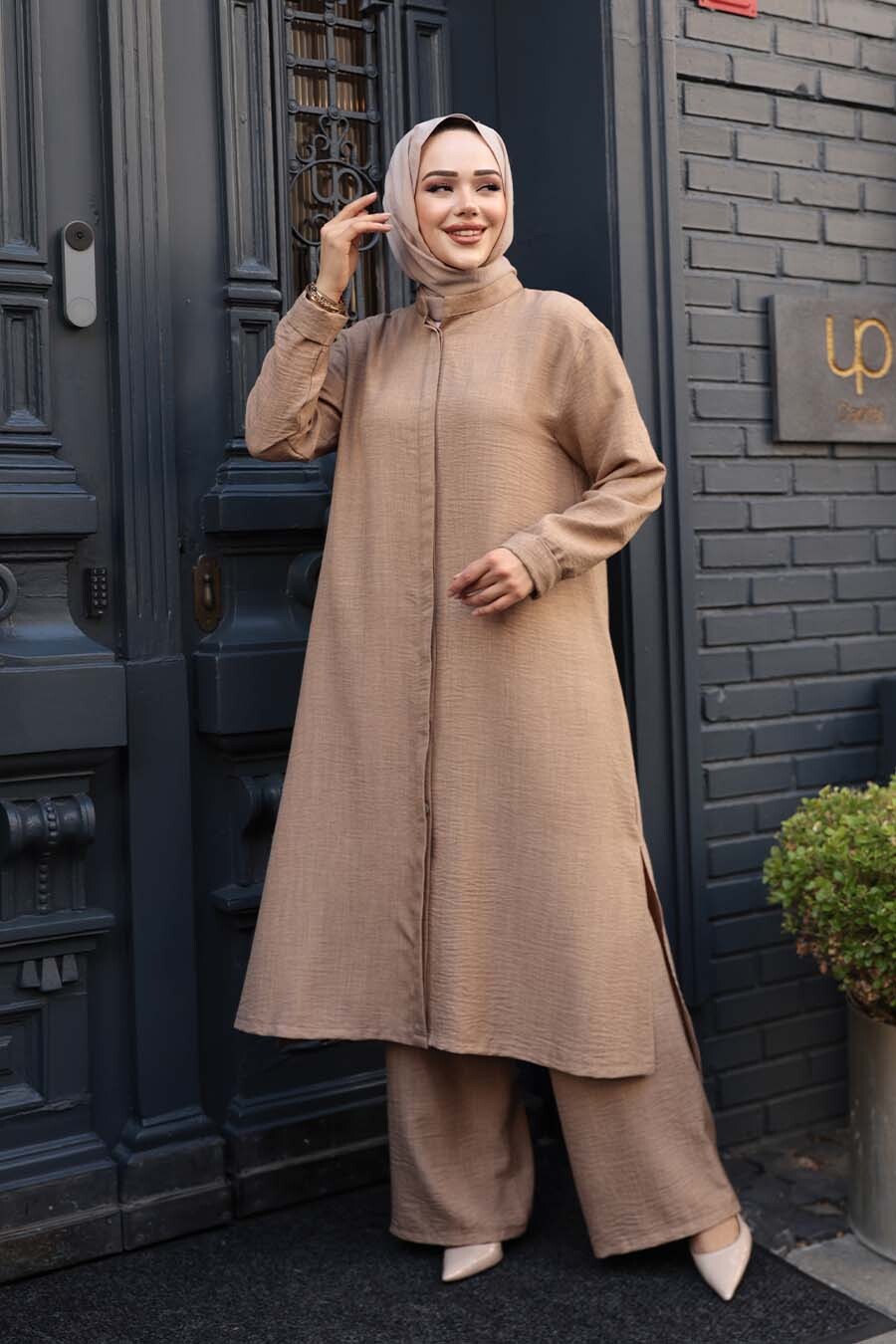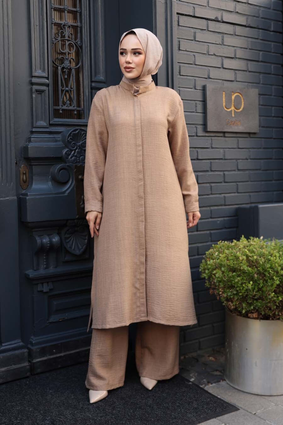 Ürün Özelliği:Dik yaka, uzun kollu, ön ortadan gizli düğme kapamalı, içlikli, pantolon belden lastikli ve geniş paçadır. Ürün Boyu:Üst:120 cm Alt:110 cm