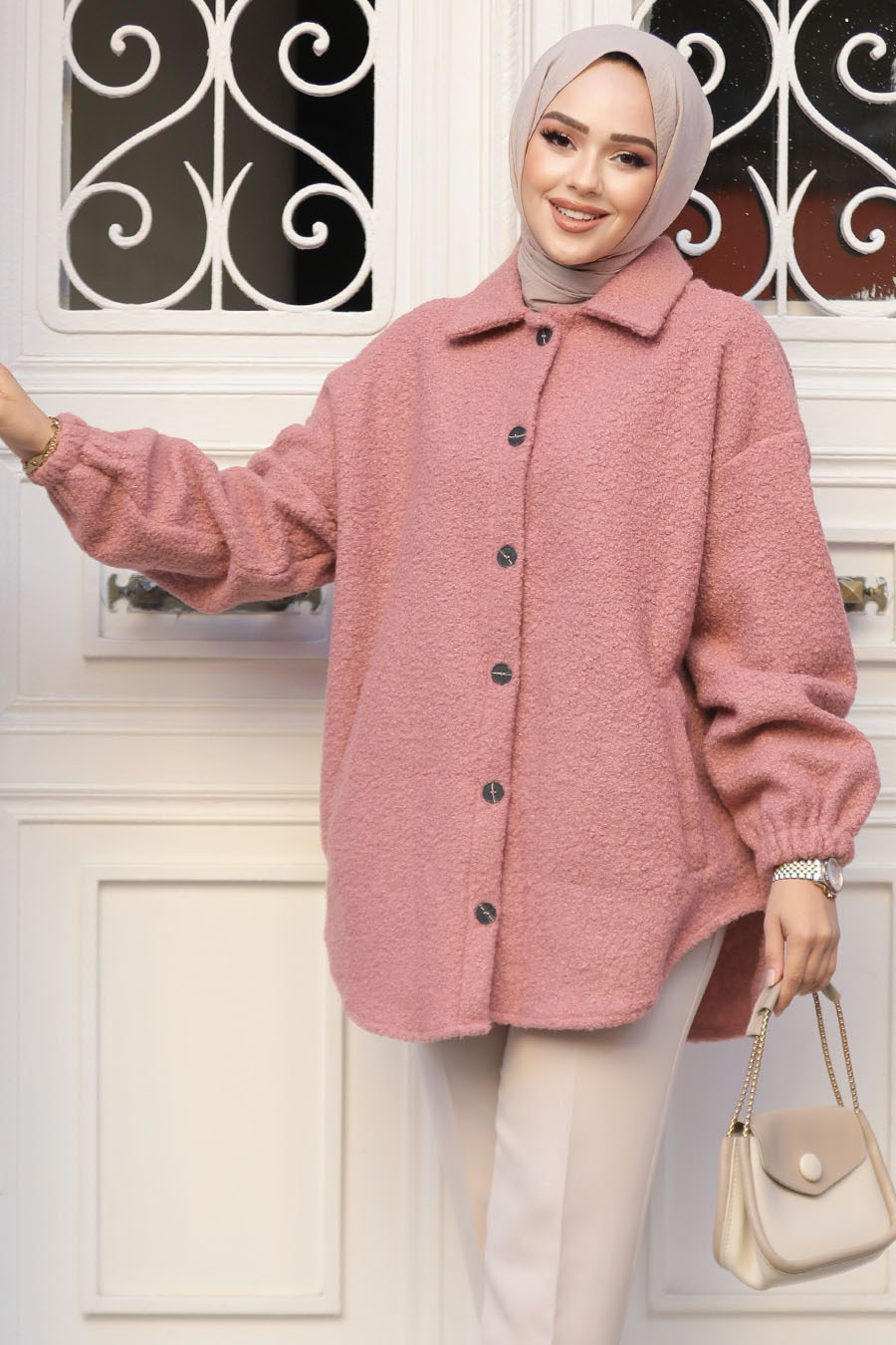 Ürün Özelliği: Klasik yaka, uzun kollu, kol ucu lastikli, yanlardan cepli ve ön ortadan düğme kapamalıdır.