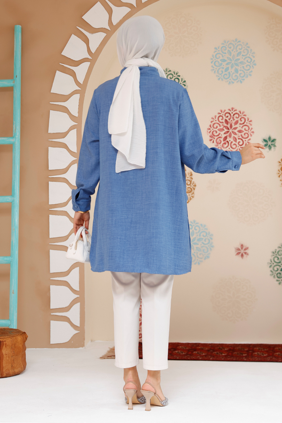 Düğmeli İndigo Mavisi Tesettür Tunik 30881IM