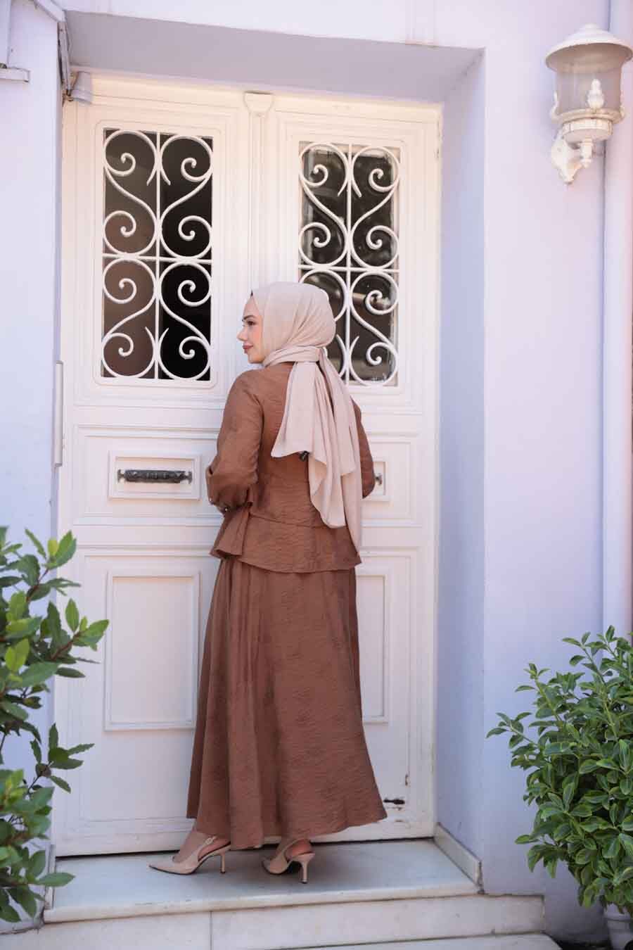 Etekli Kahverengi Tesettür İkili Takım 20239KH