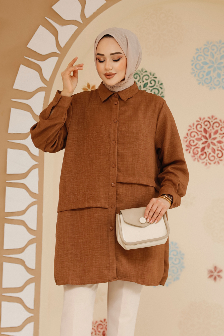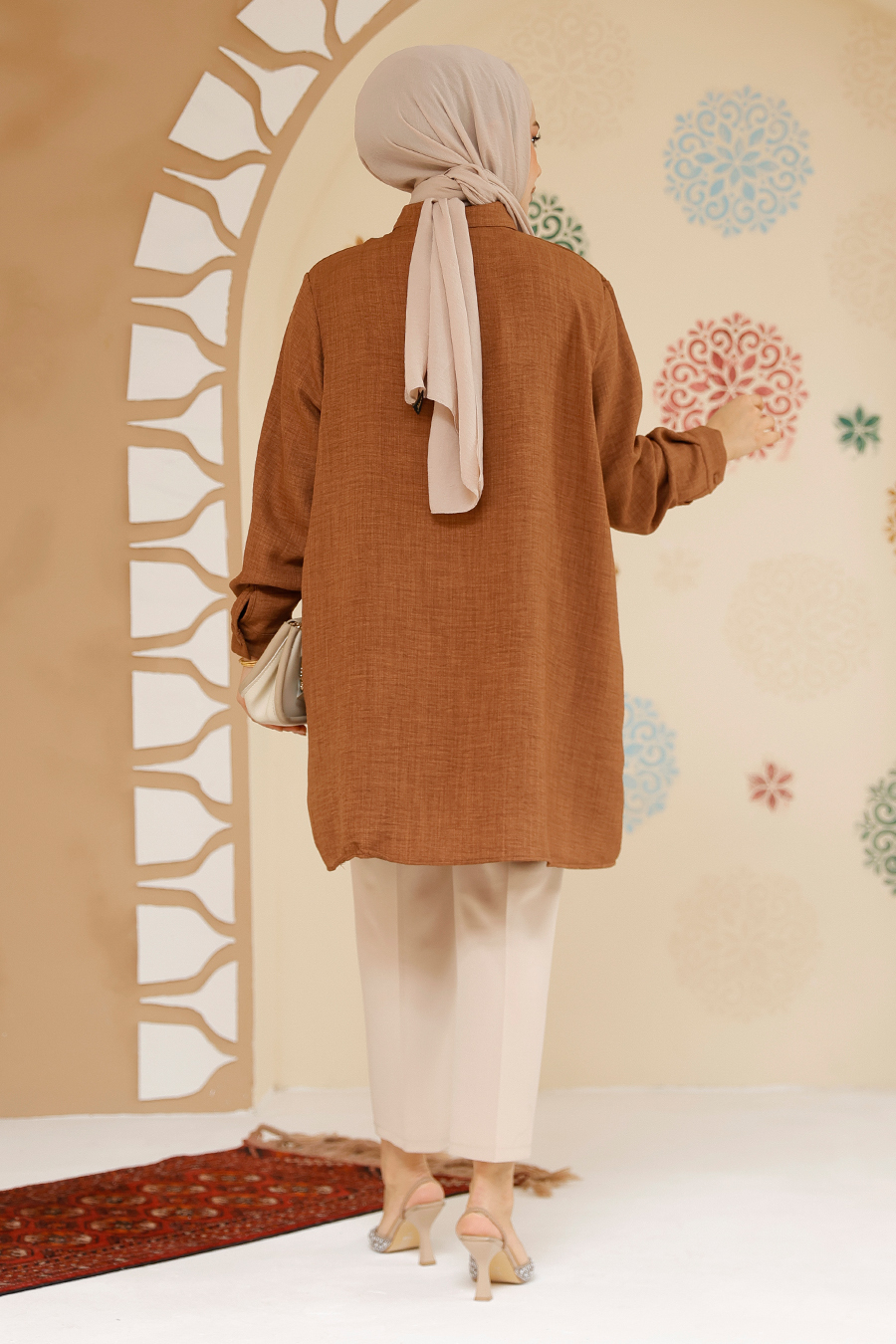 Düğmeli Kahverengi Tesettür Tunik 30881KH