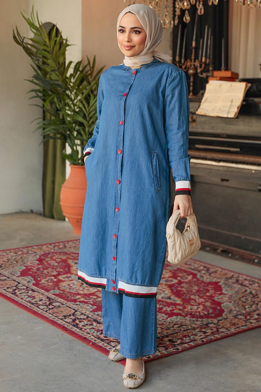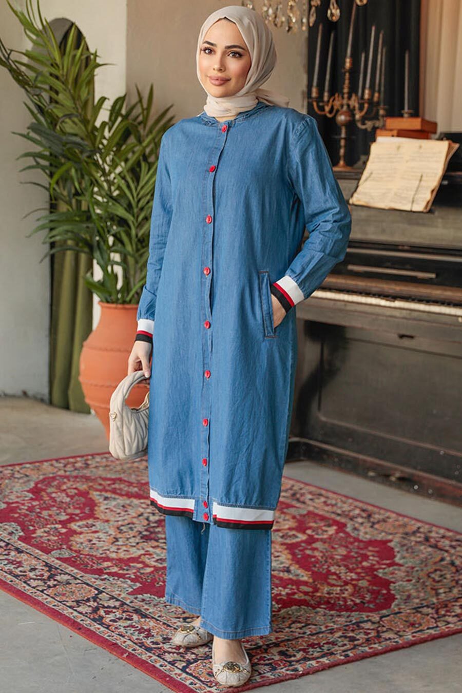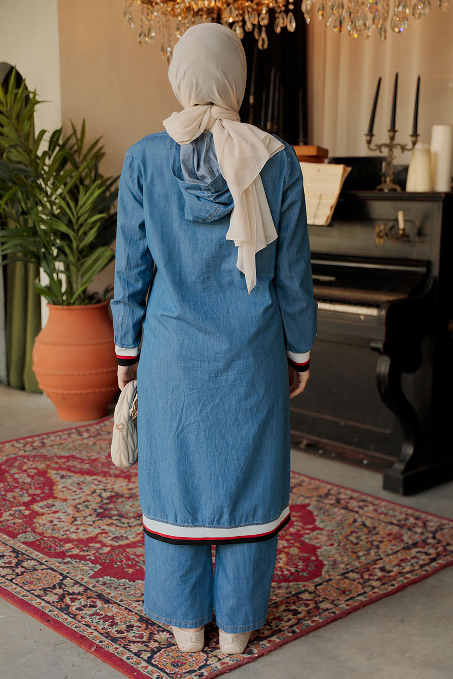 Ürün Özelliği: Sıfır yaka, kapüşonlu, uzun kollu, etek ucu lastikli, ön ortadan düğmeli, yanlardan cepli, pantolon belden lastikli ve boru paçadır.Ürün Boyu: Üst:108 cm Alt:100 cm