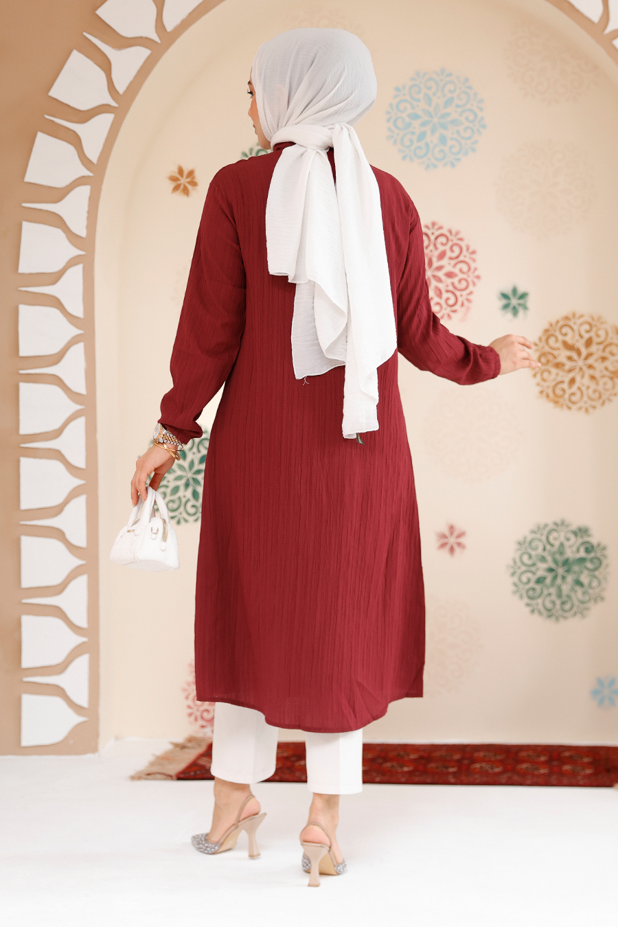 Düğmeli Vişne Tesettür Tunik 70381VSN