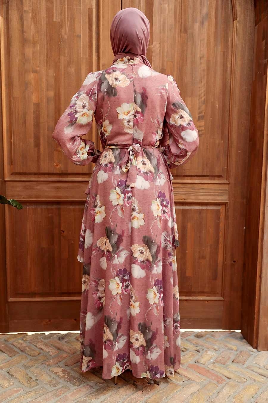Modest Brown Floral Long Sleeve Dress 50251KH