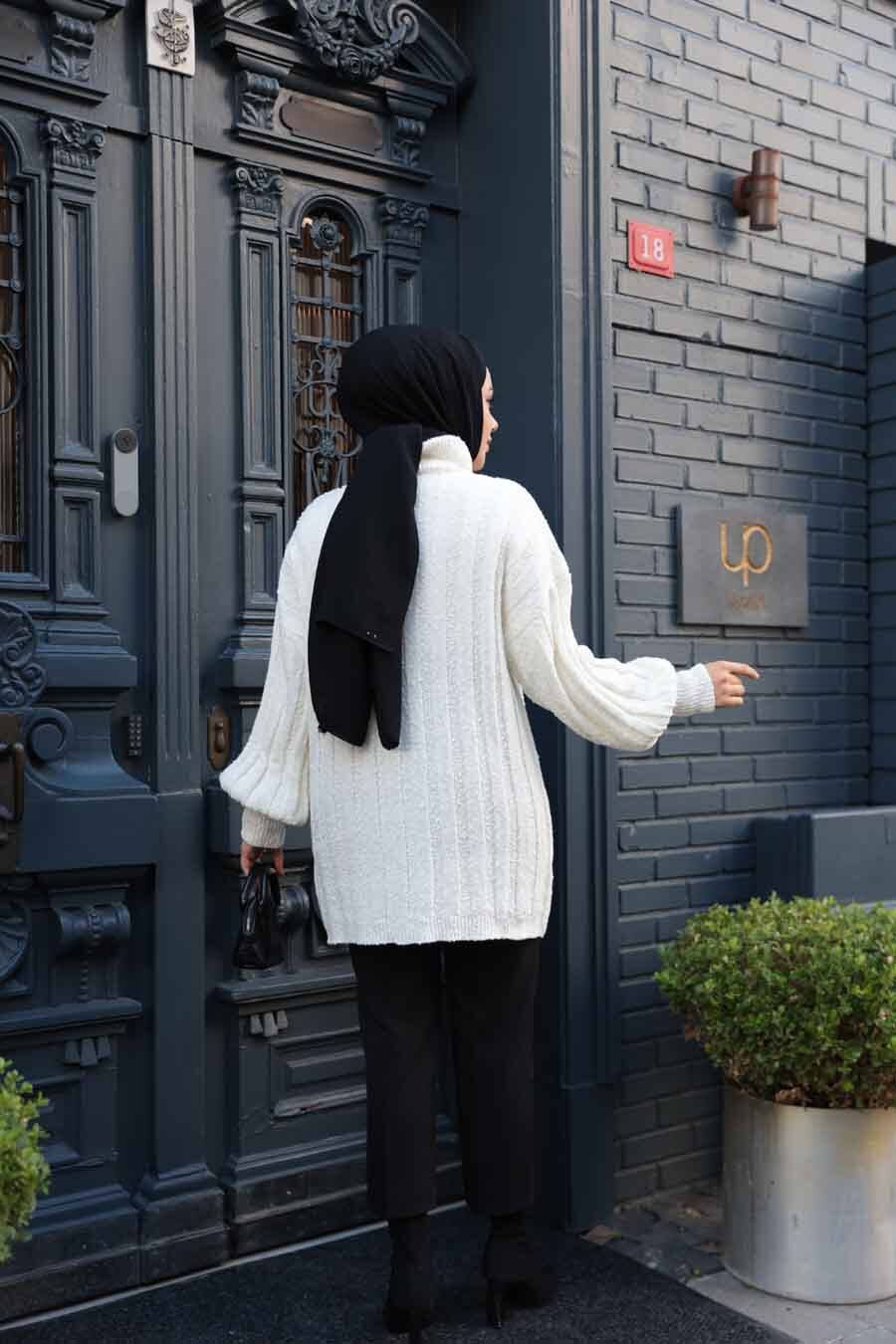 Ürün Özelliği: Boğazlı yaka, uzun kollu, kol ucu lastikli, pamuk detaylı ve fitillidir.