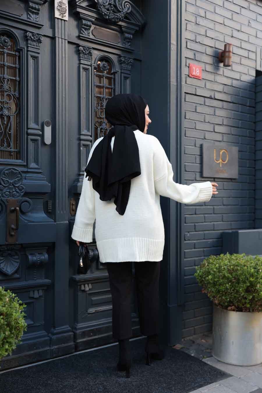 Ekru Tesettür Triko Kazak Tunik 70012E