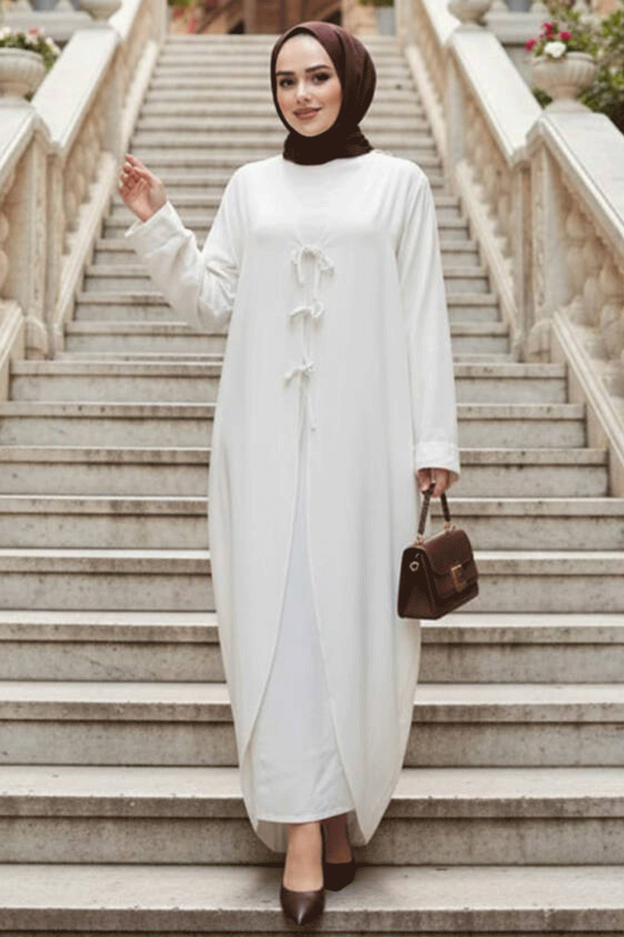Ürün Özelliği:V yaka, uzun kollu, ön ortadan bağcık kapamalı ve içlik elbiselidir. Ürün Boyu:Üst:151 cm iç:151 cm