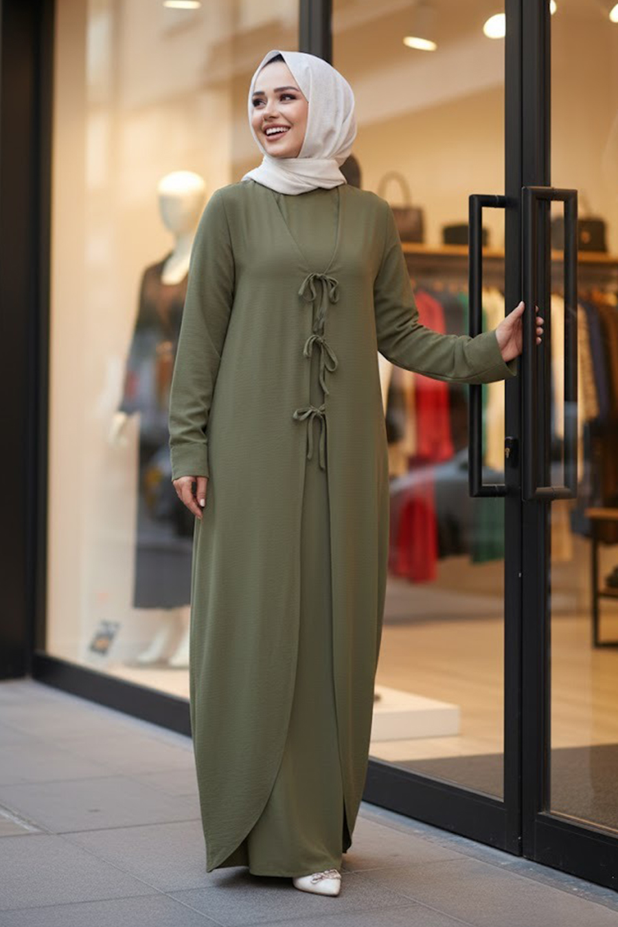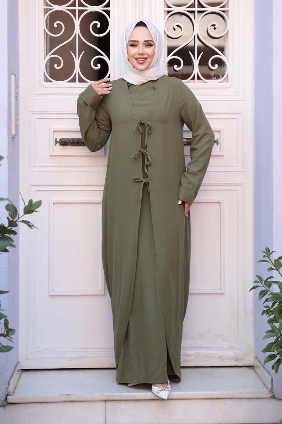 Ürün Özelliği:V yaka, uzun kollu, ön ortadan bağcık kapamalı ve içlik elbiselidir. Ürün Boyu:Üst:151 cm iç:151 cm