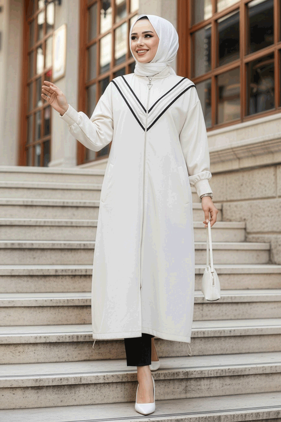 Fermuarlı Bej Tesettür Kap 15201BEJ