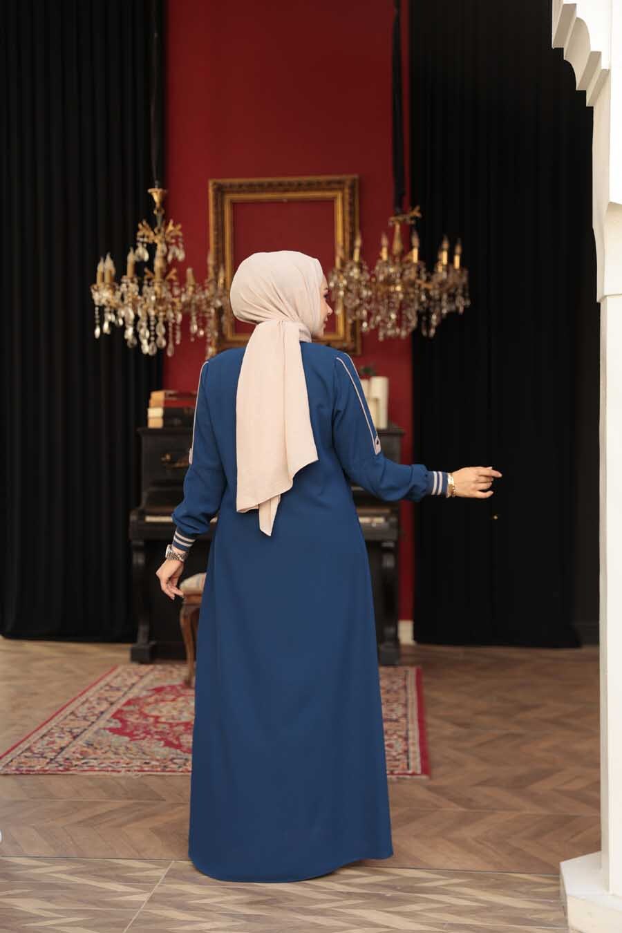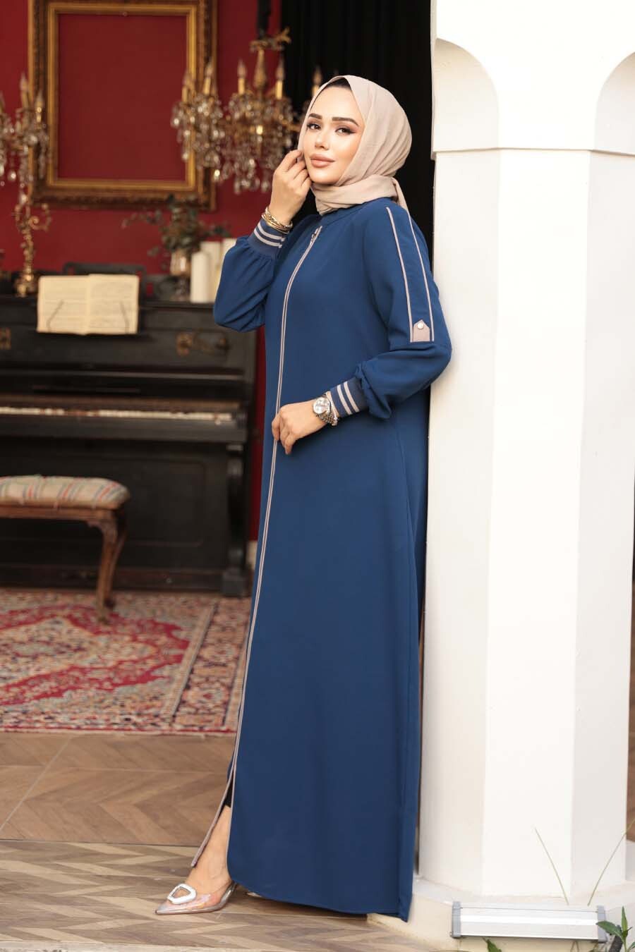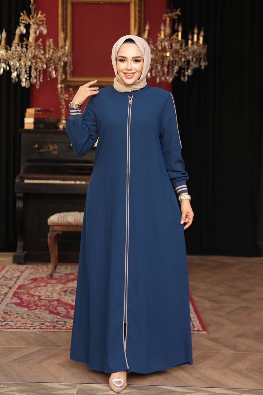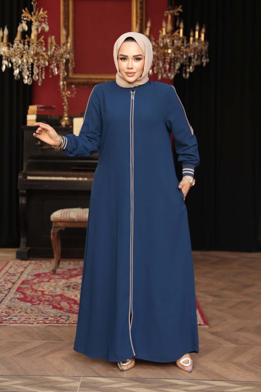 Fermuarlı İndigo Mavisi Tesettür Ferace 26381IM
