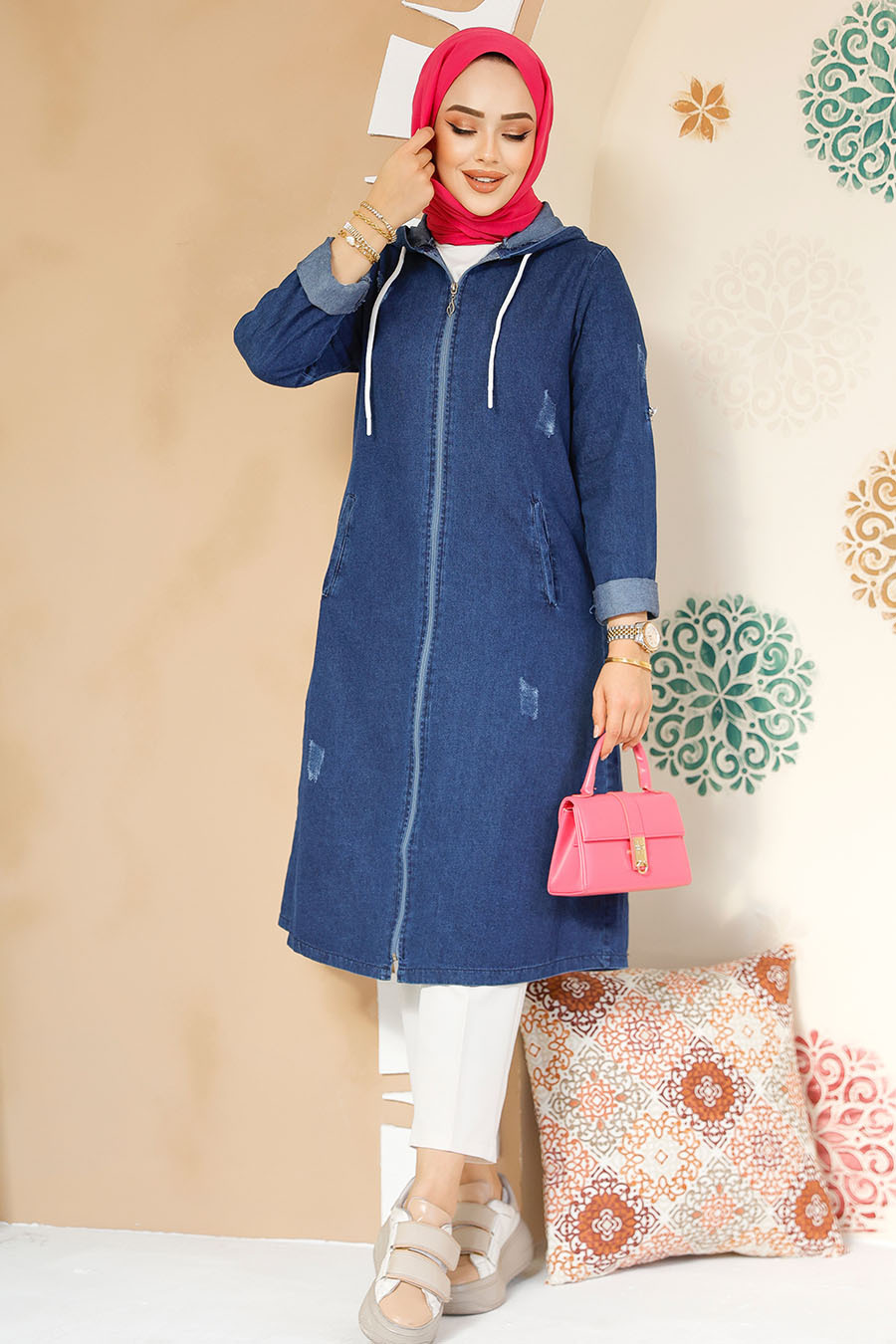 Ürün Özelliği: Sıfır yaka, uzun kollu, kapüşonlu, yanlardan cepli ve ön ortadan fermuarlıdır.