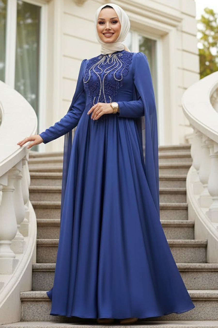 Neva Style - Modern İndigo Blue Islamic Engagement Dress 22140IM