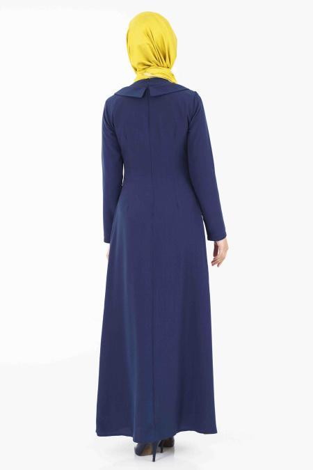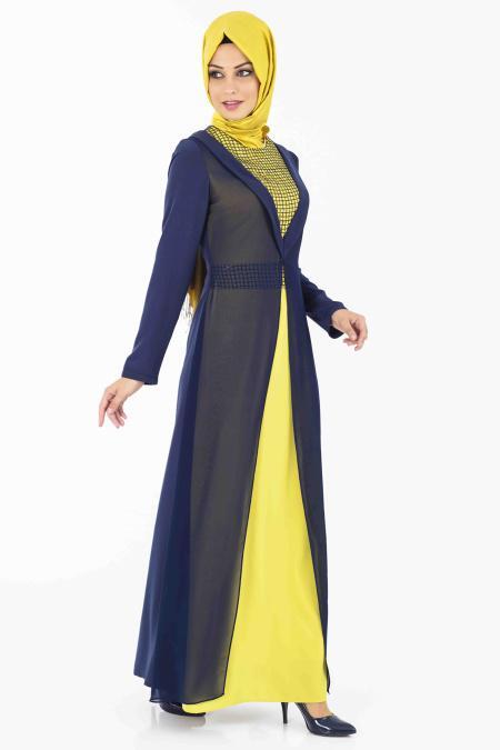 İpekdal - Üzeri Tül Detaylı Sarı Tesettür Elbise 3820SR