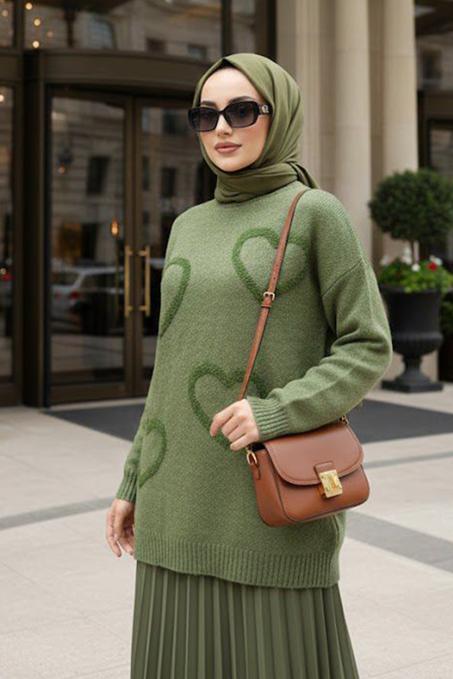 Ürün Özelliği: Dik yaka, uzun kollu, ve kalp desenlidir.