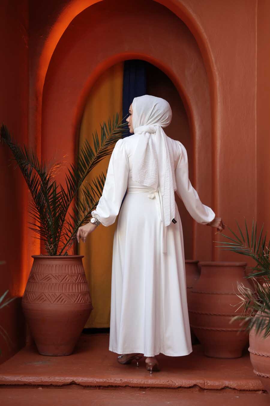 Kumaş Özelliği: %50 Polyester %40 Pamuklu %10 Likralı kumaştan üretilmiştir. Ürün Özelliği: Sıfır yaka, uzun kollu, kol ucu lastikli, omuzları büzgülü, kendi kumaşından kemerli ve arka ortadan fermuarlıdır. Ürün Boyu: 140 cm