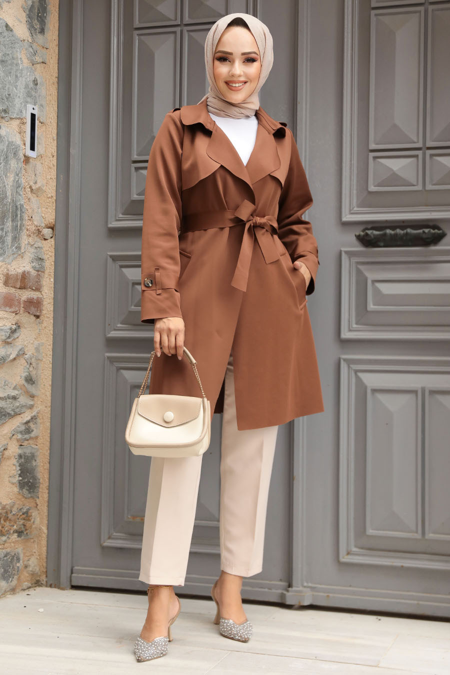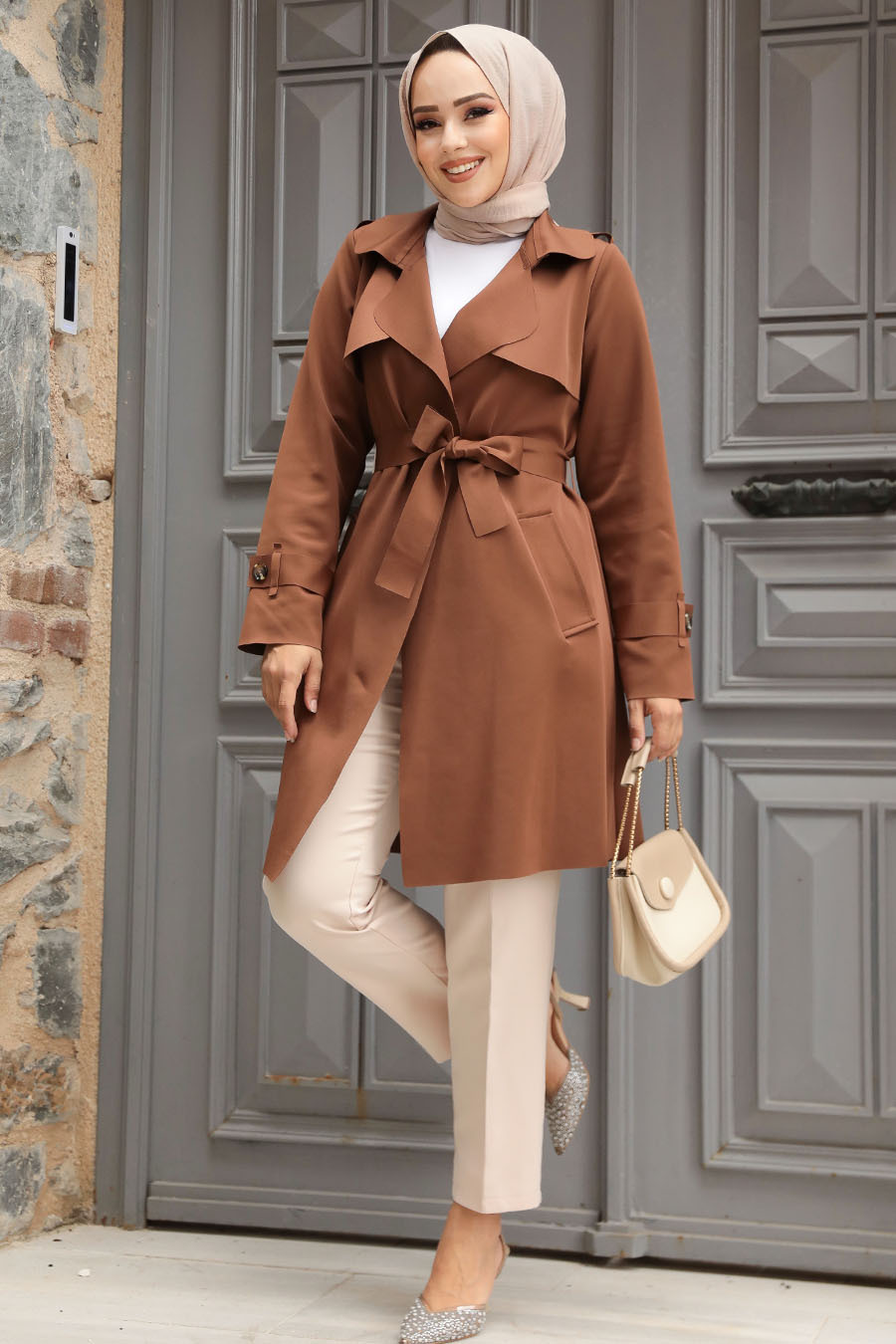 Kemerli Kahverengi Tesettür Kap 72131KH
