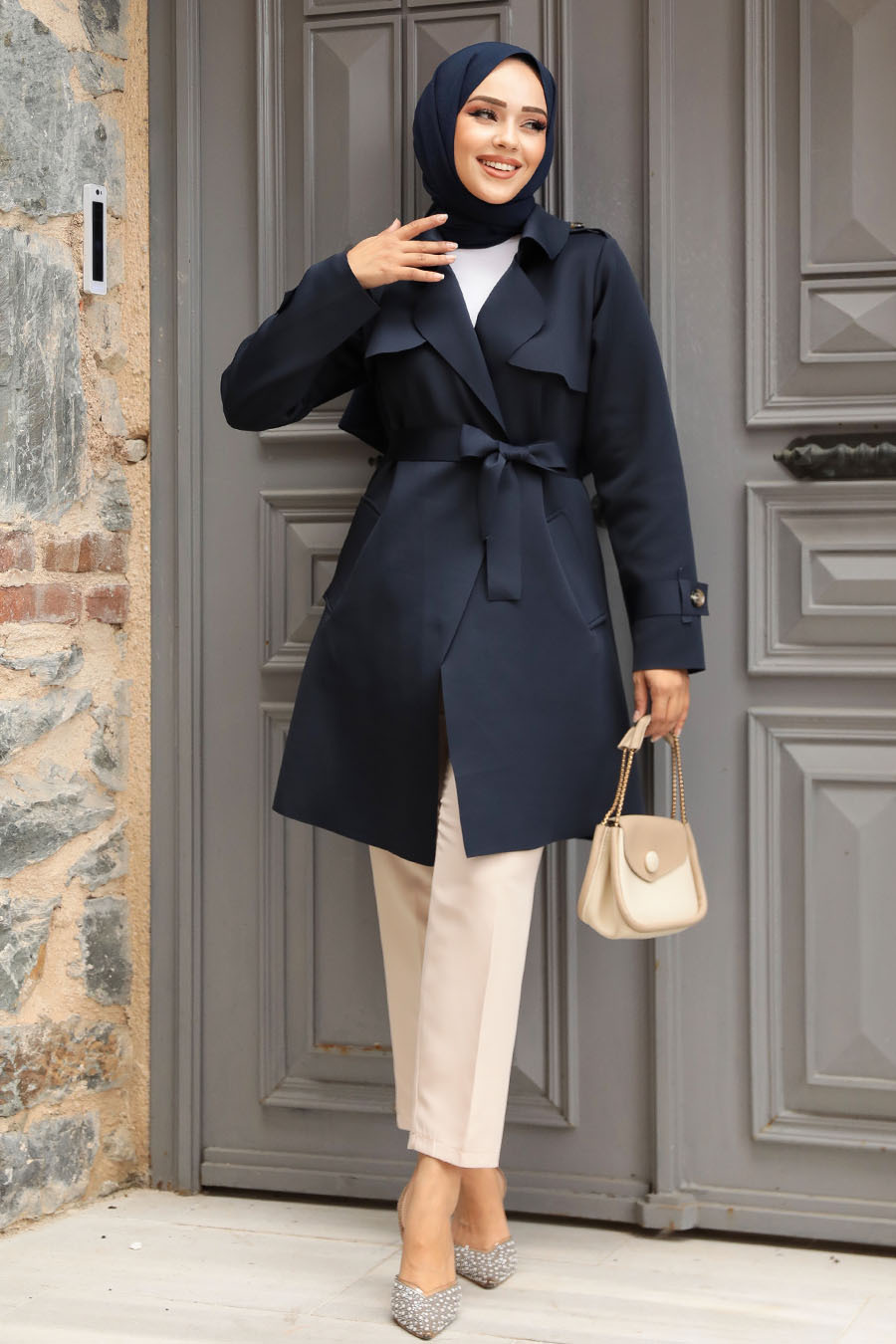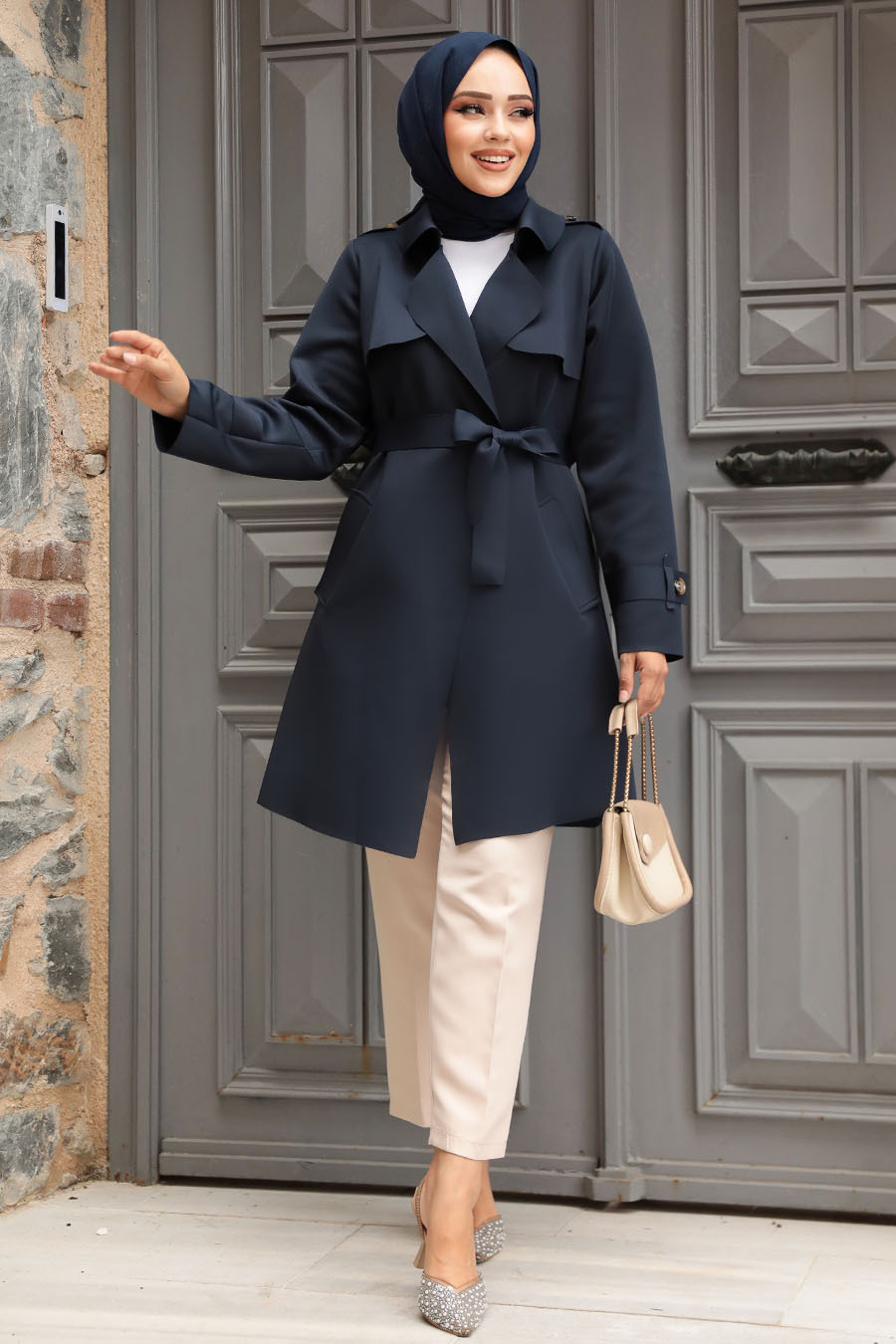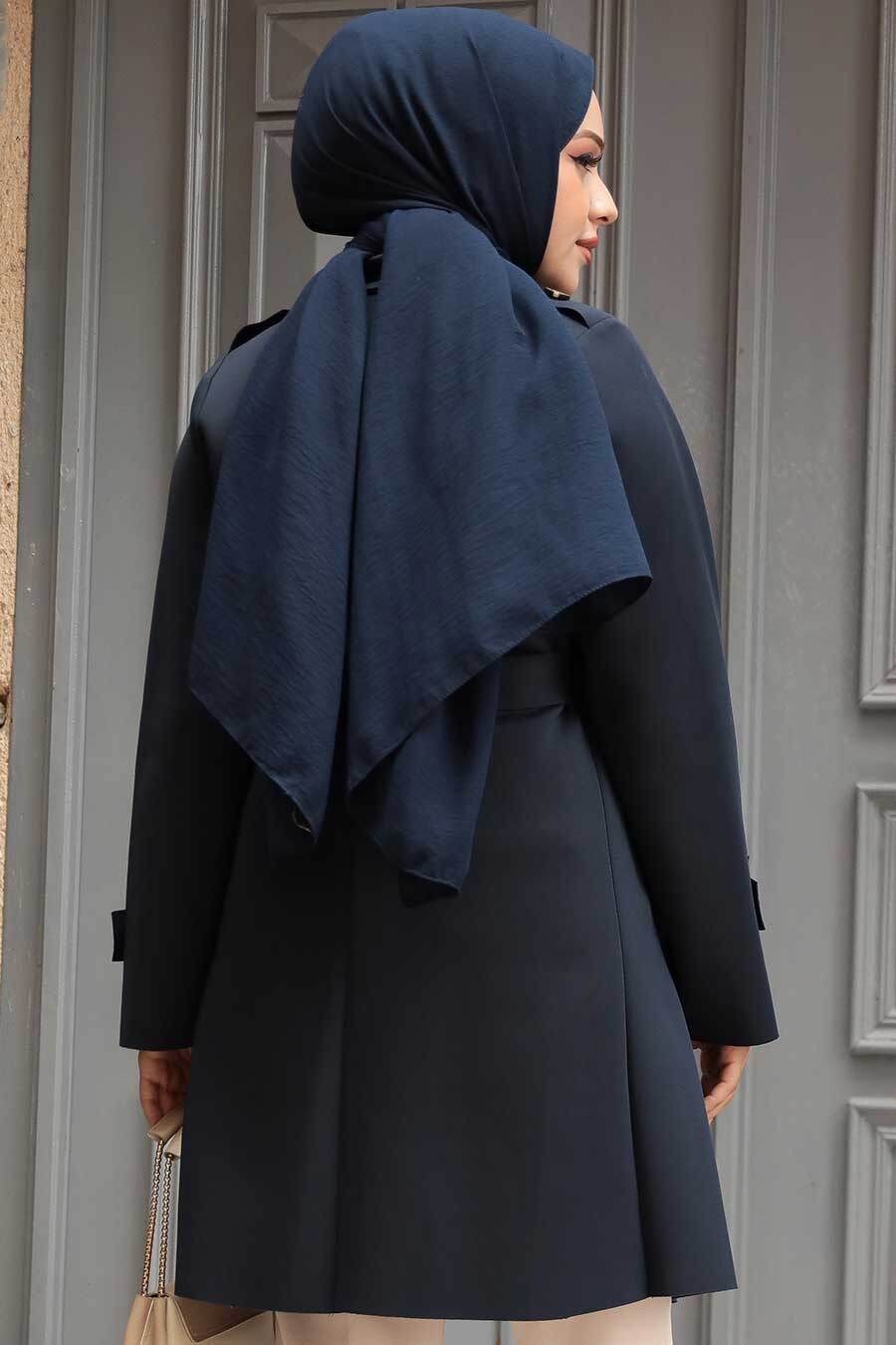Şal Yaka Süet Lacivert Tesettür Kap 72112L