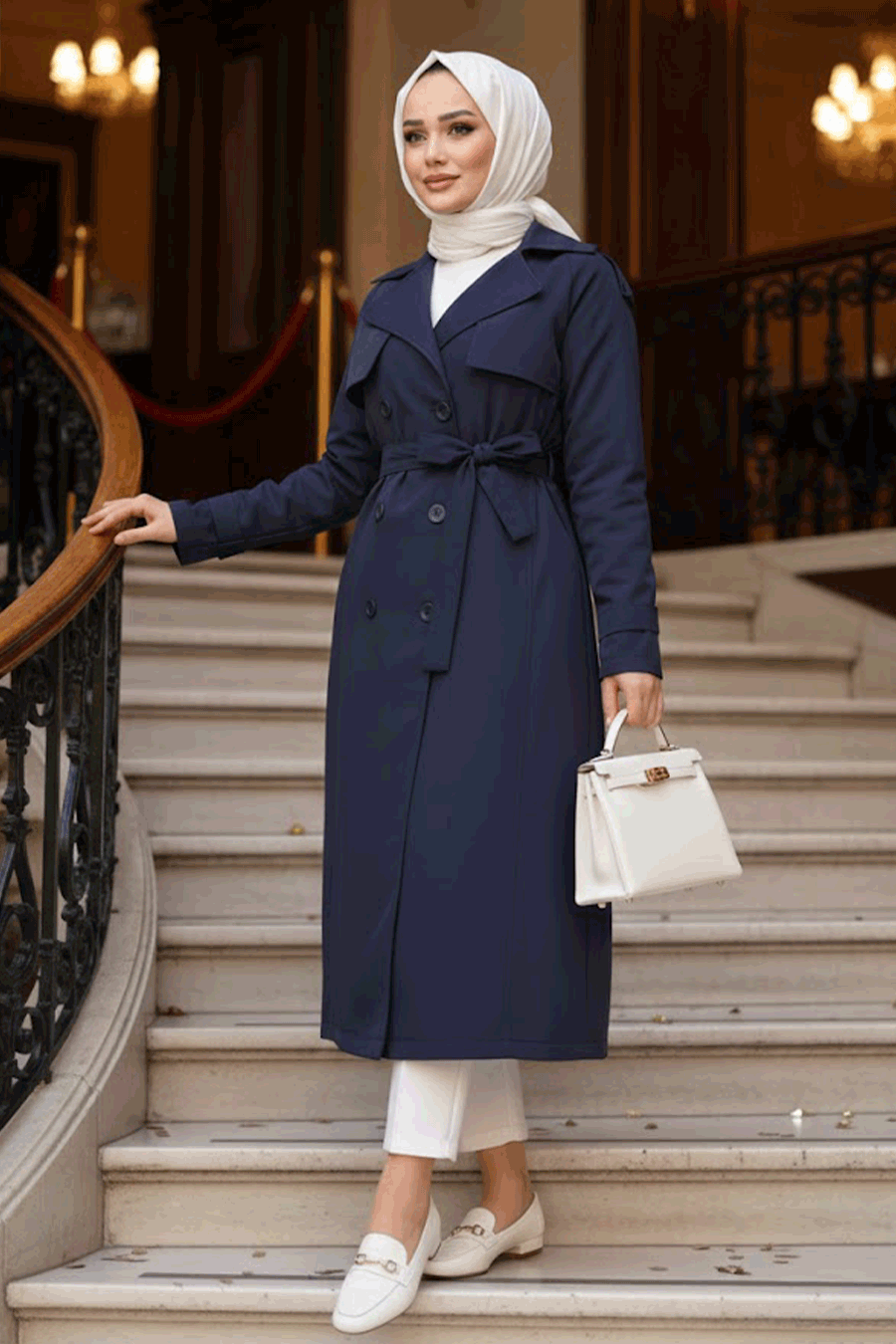 Ürün Özelliği: Klasik yaka, uzun kollu, düğme kapamalı, yanlardan cepli ve kendi kumaşından kemerlidir.Ürün Boyu: 120 cm