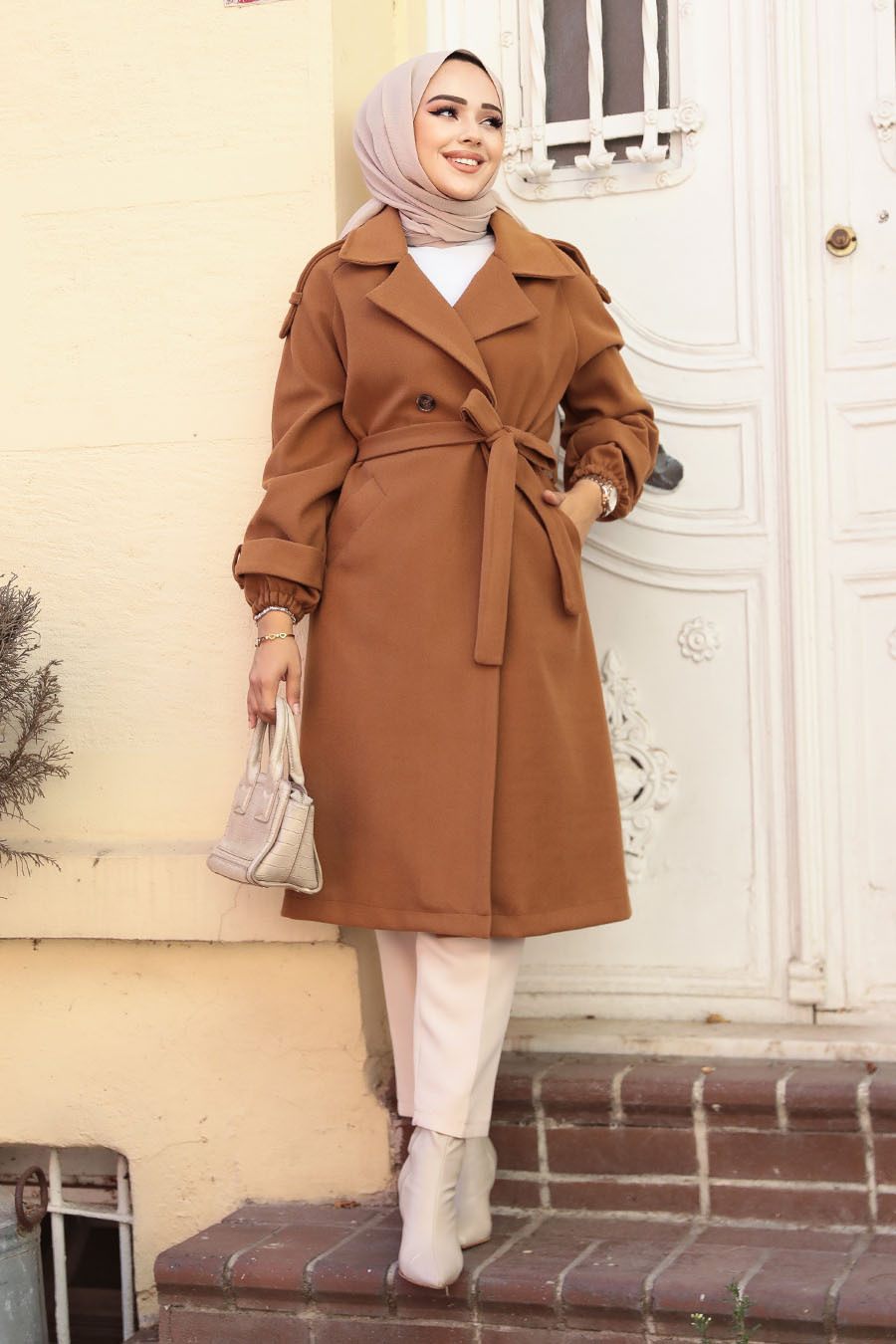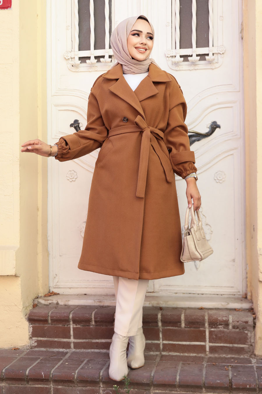 Kemerli Taba Kaşe Tesettür Kaban 61102TB