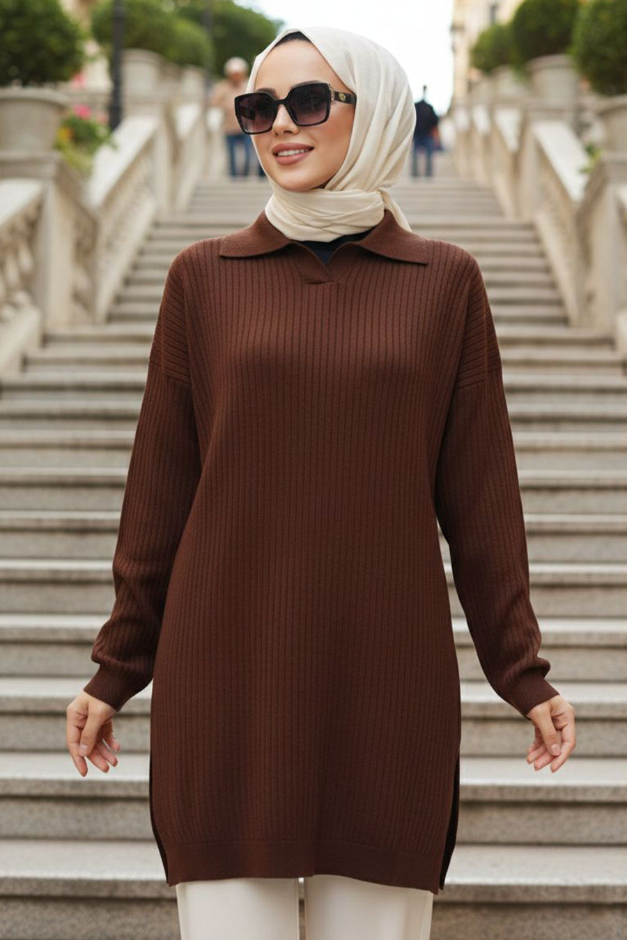 Koyu Kahverengi Tesettür Triko Kazak 10921KKH