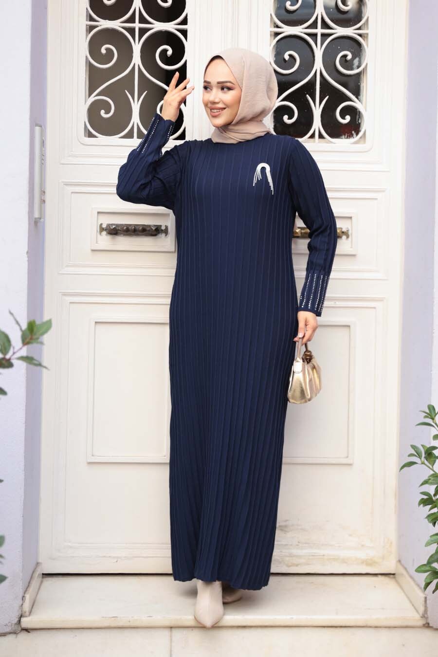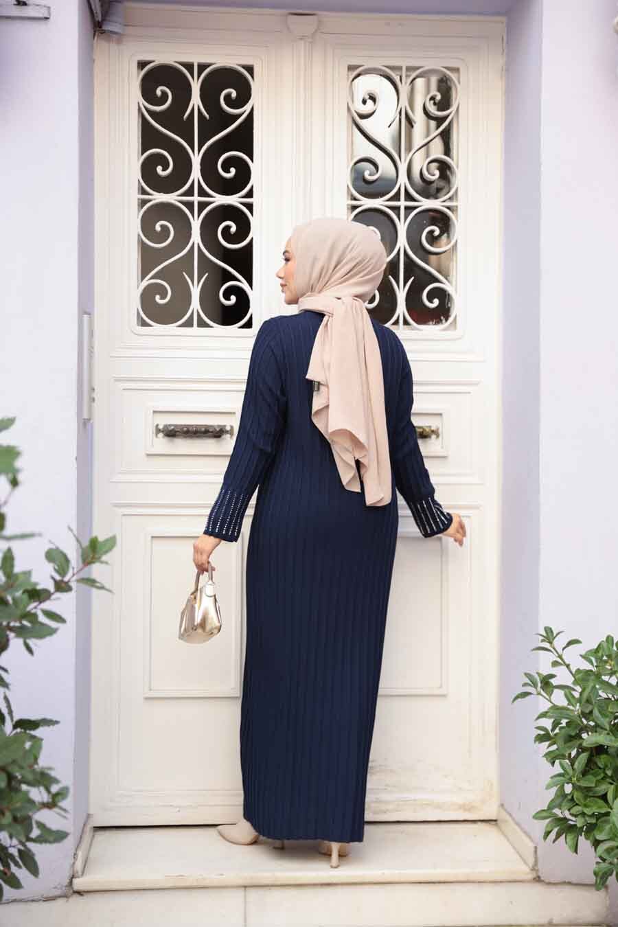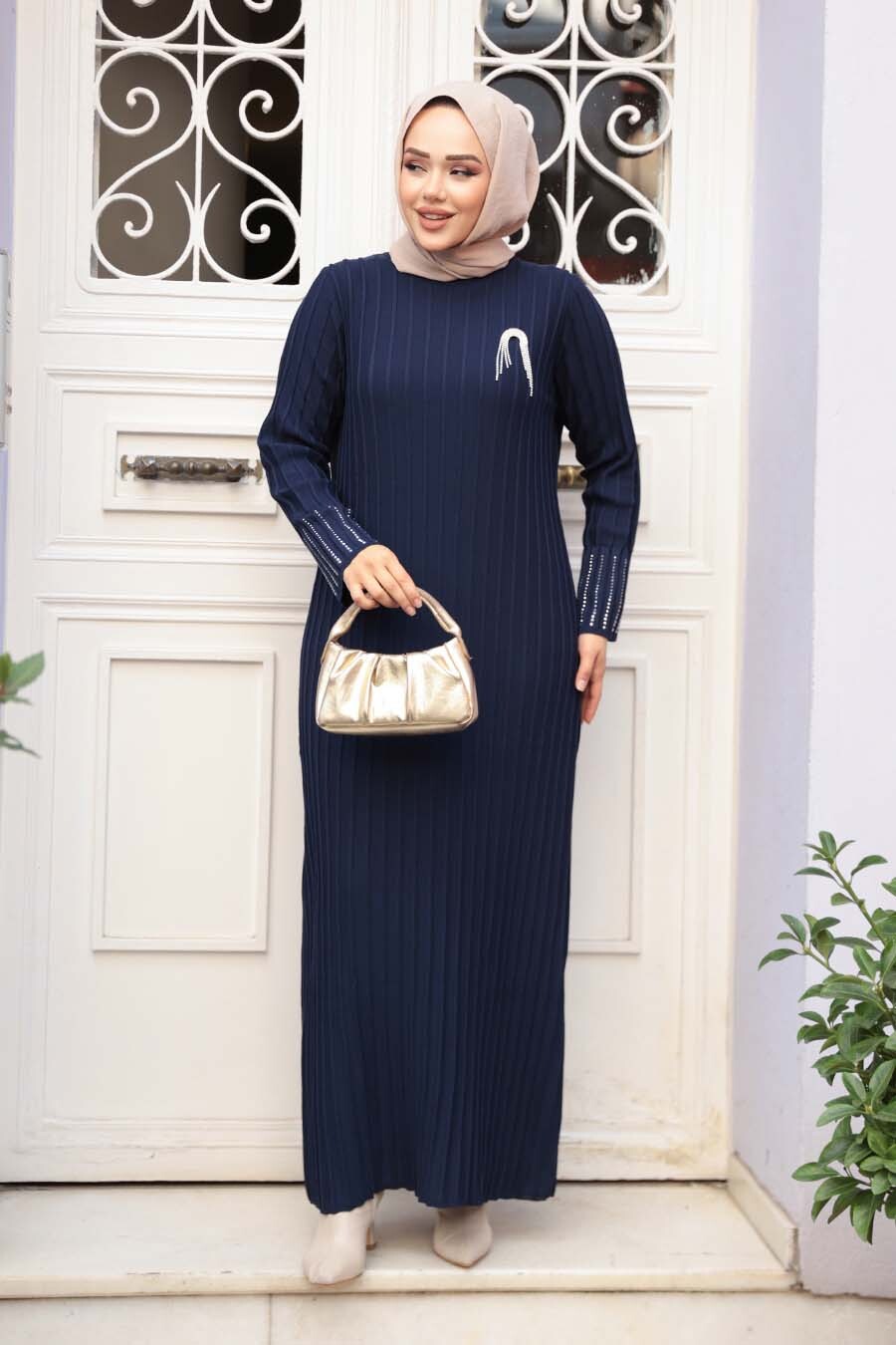 Lacivert Merserize Triko Tesettür Elbise 25631L