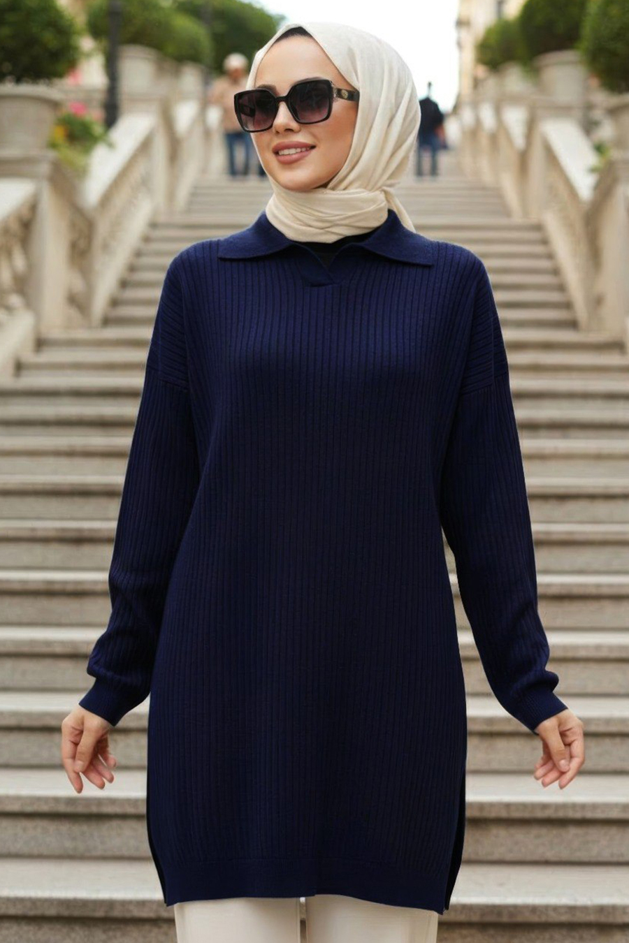 Lacivert Tesettür Triko Kazak 10921L