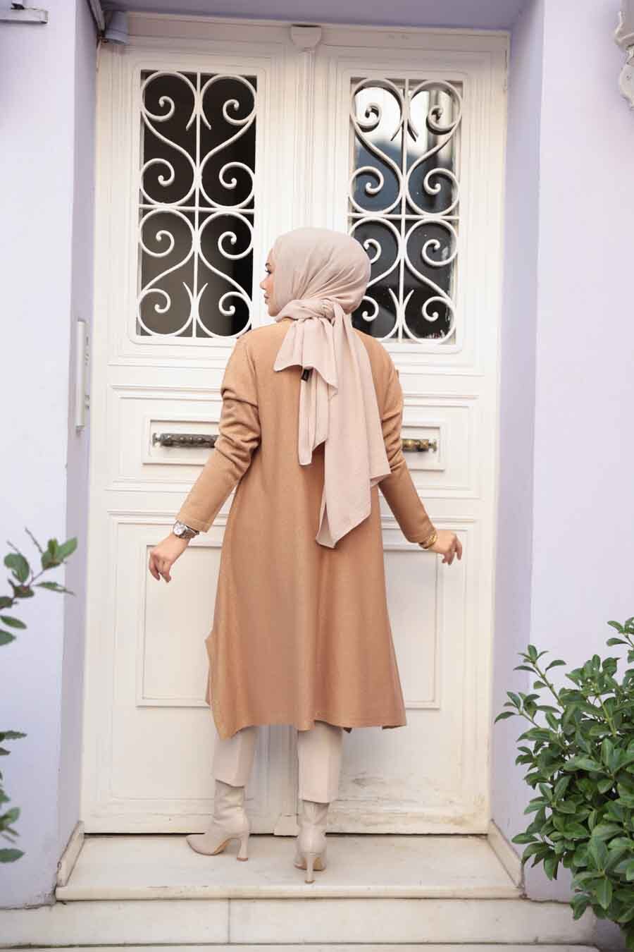 Ürün Özelliği: Boğazlı yaka, uzun kollu ve etek ucu yırtmaçlıdır.