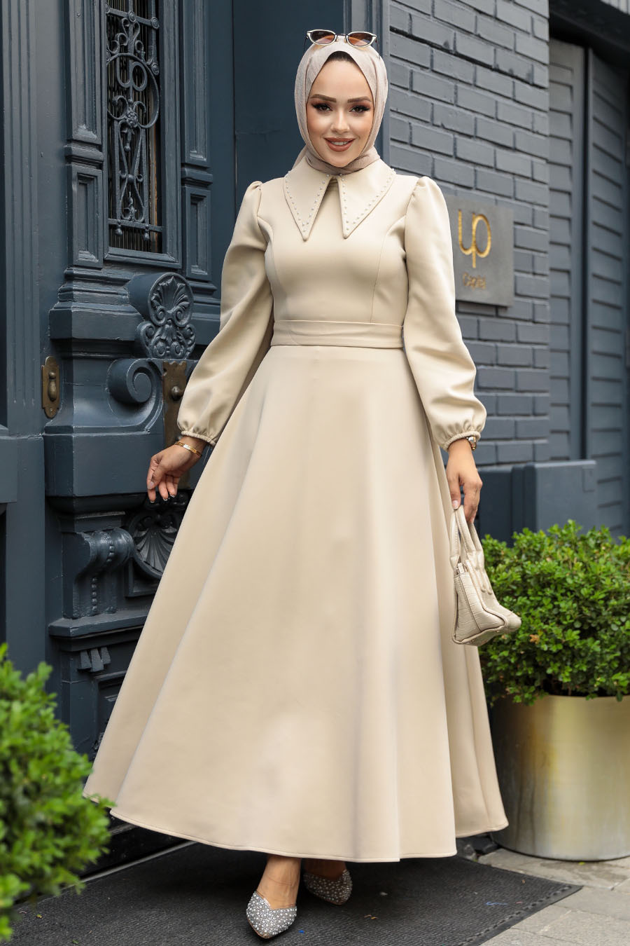 Modest Beige Dress 23123BEJ