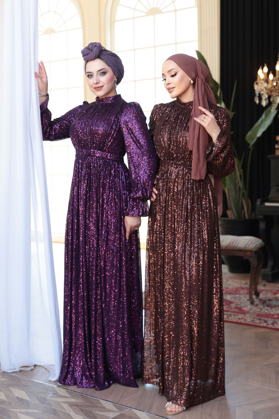 Modest Brown Evening Gown With Long Sleeve 44961KH