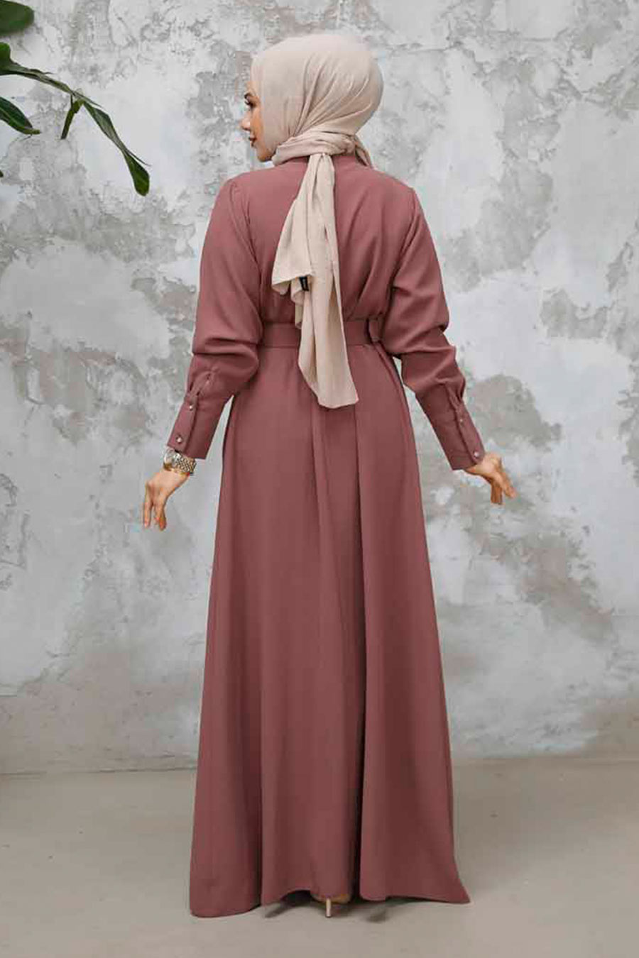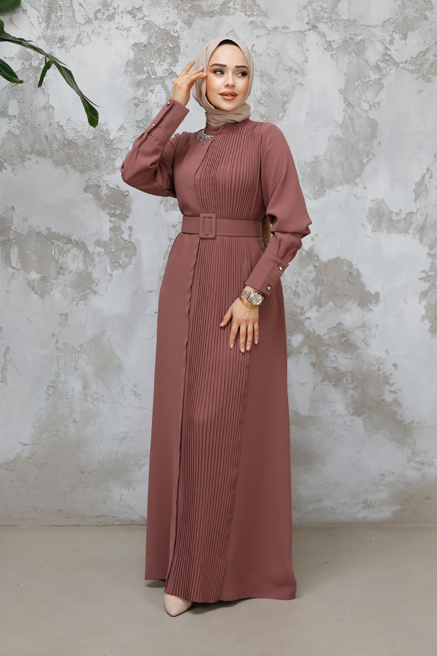 Modest Dusty Rose Plus Size Pleated Dress 65879GK