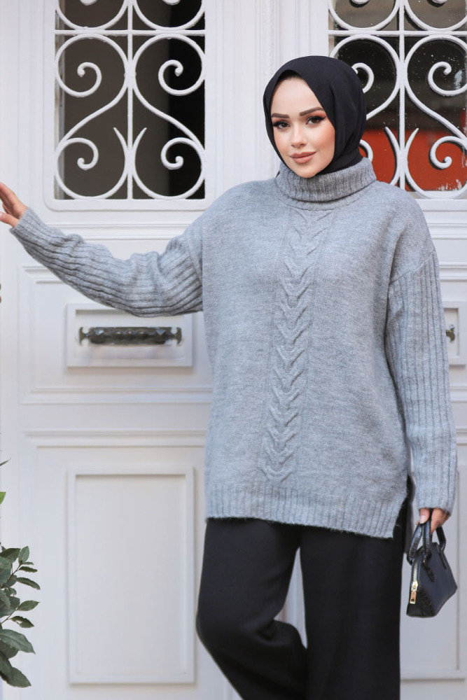 Neva Style - Elegant Grey Muslim Fashion Evening Dress 4566GR