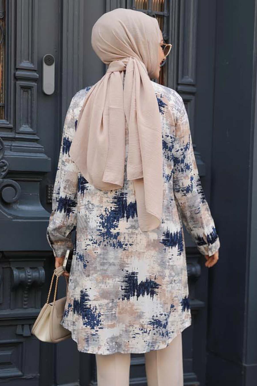Düğmeli Bej Tesettür Trençkot 7261BEJ