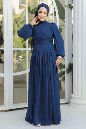 Neva Style - Stylish İndigo Blue Hijab Evening Dress 2205IM