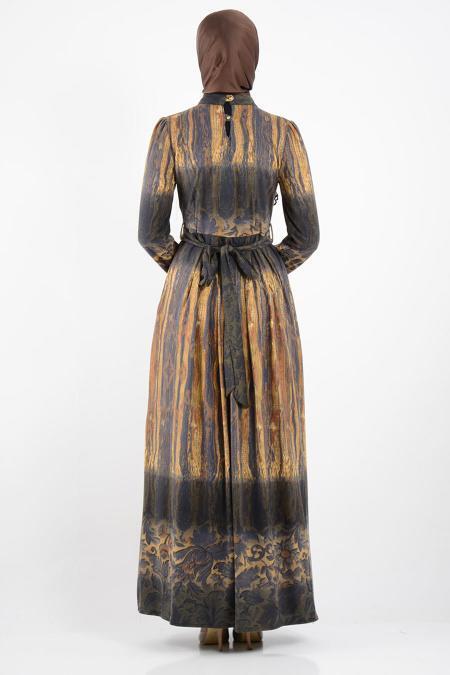 Mottox - Desenli Mor Elbise 2267MOR