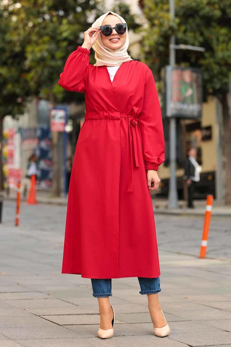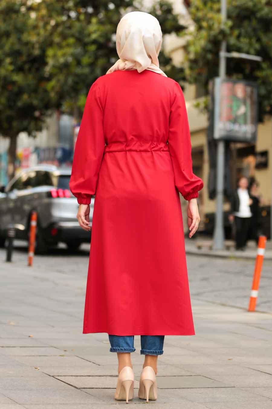 Nayla Colection - Bağcıklı Kırmızı Tesettür Kap 5466K