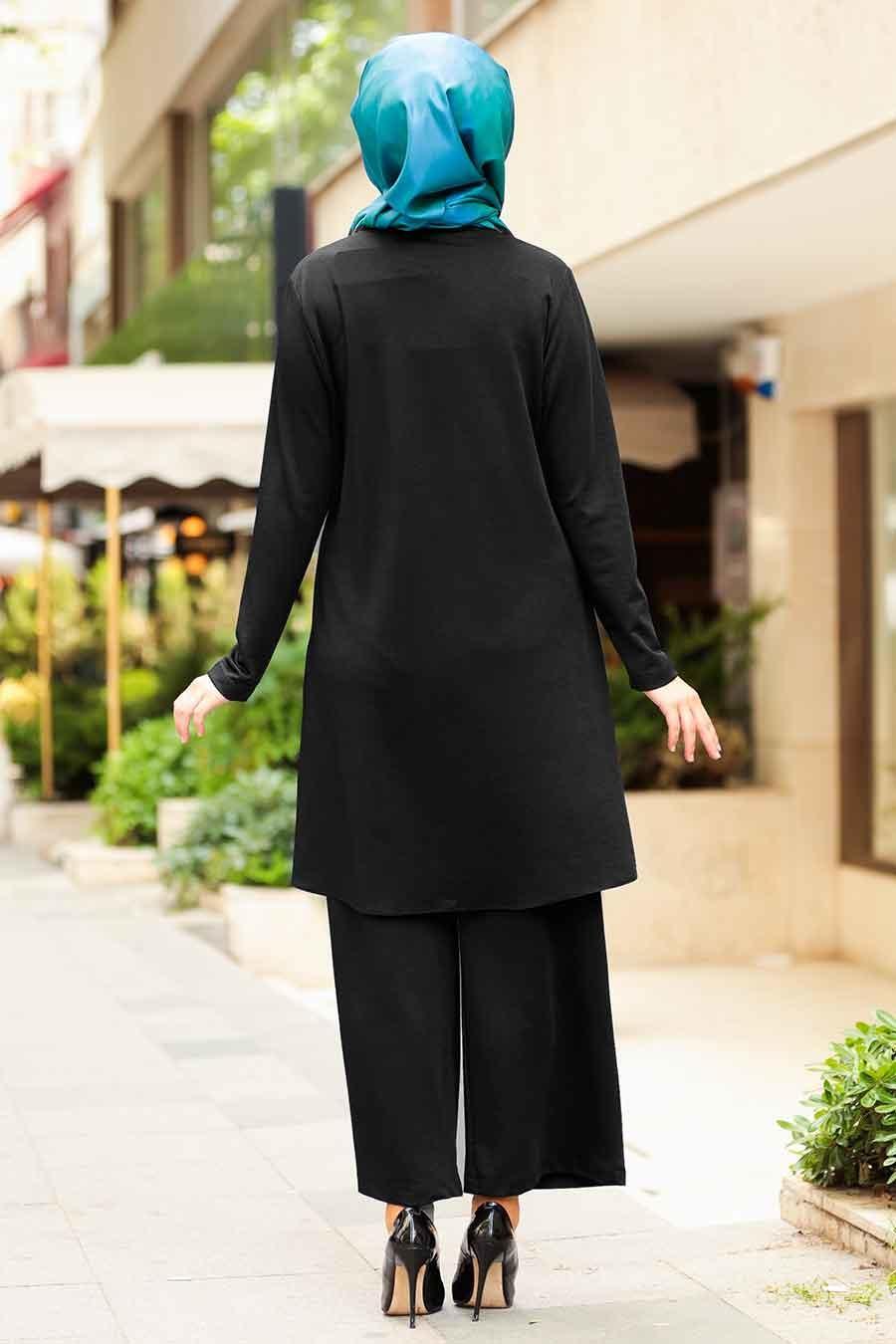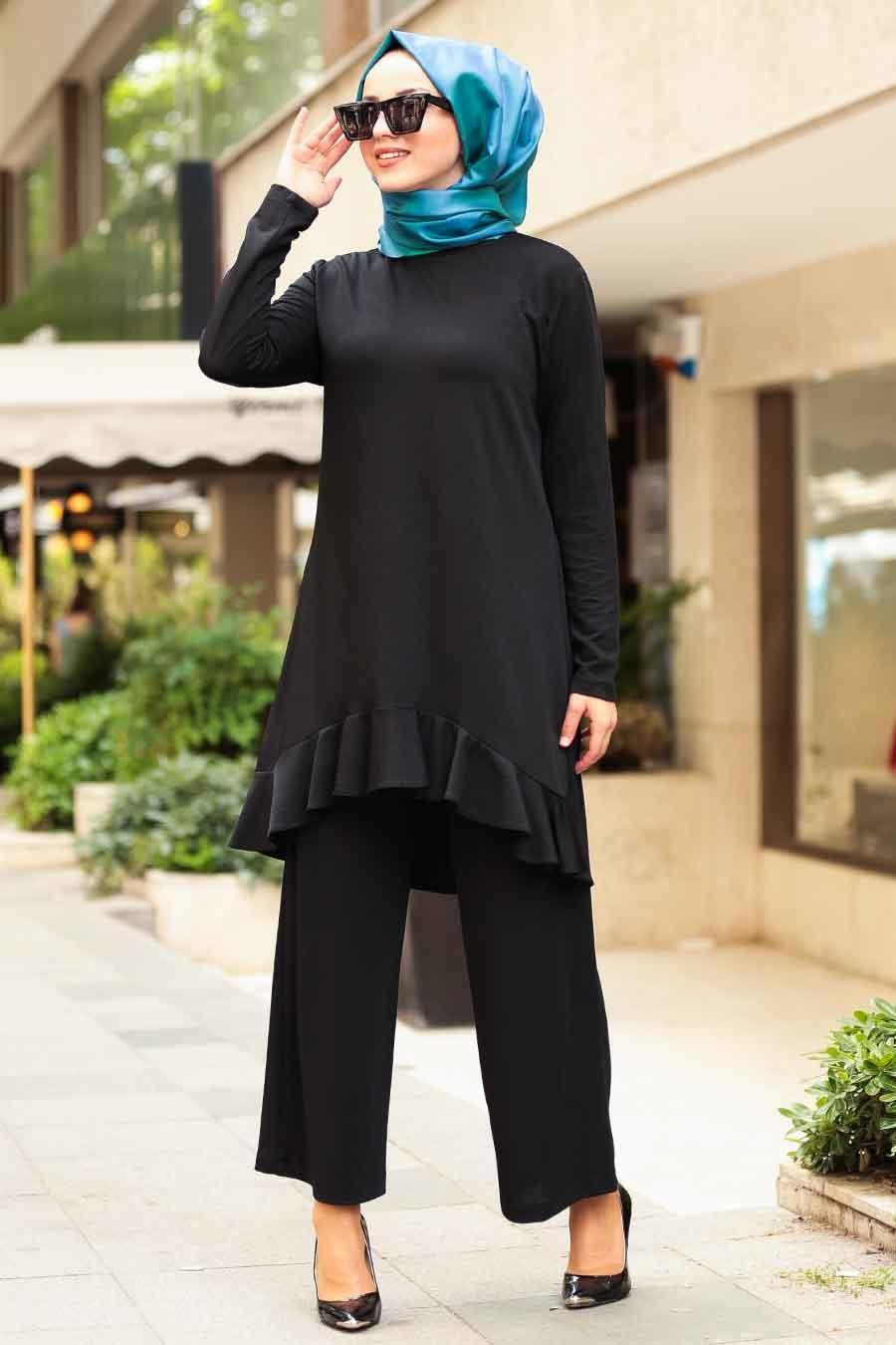 Nayla Collection - Fırfır Detaylı Siyah Tesettür Takım 153S