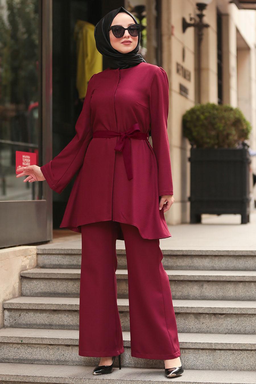 Kumaş Özelliği: Krep kumaştan üretilmiştir.Ürün Özelliği: Önden gizli düğme kapamalıdır. Pantolon belden lastiklidir. Üst tunik belden kemerlidir. Pantolon ispanyol modeldir.