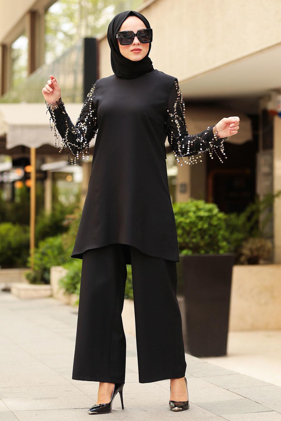 Kumaş Özelliği: Krep kumaştan üretilmiştir.Ürün Özelliği: Tunik arka ortadan düğme kapamalıdır. Pantolon belden lastiklidir. Tuniğin kolları püskül pul detaylıdır.