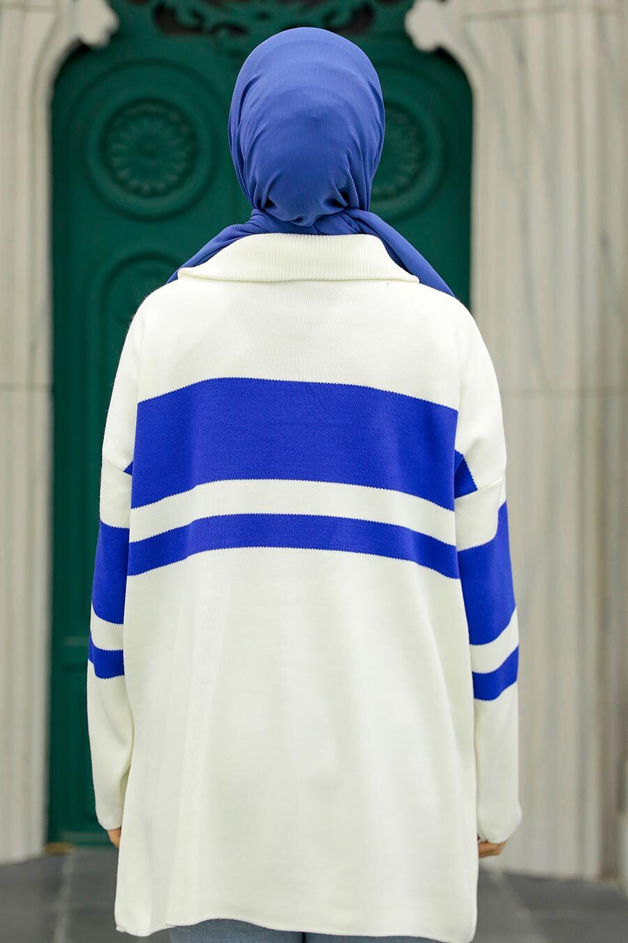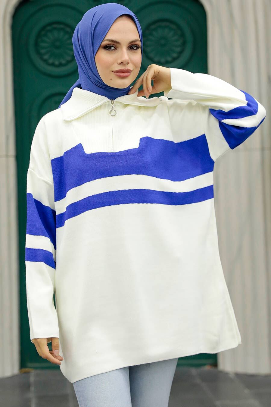 Ürün Özelliği: Dik yaka, uzun kollu, ön ortadan yarım fermuarlı ve blok renklidir.