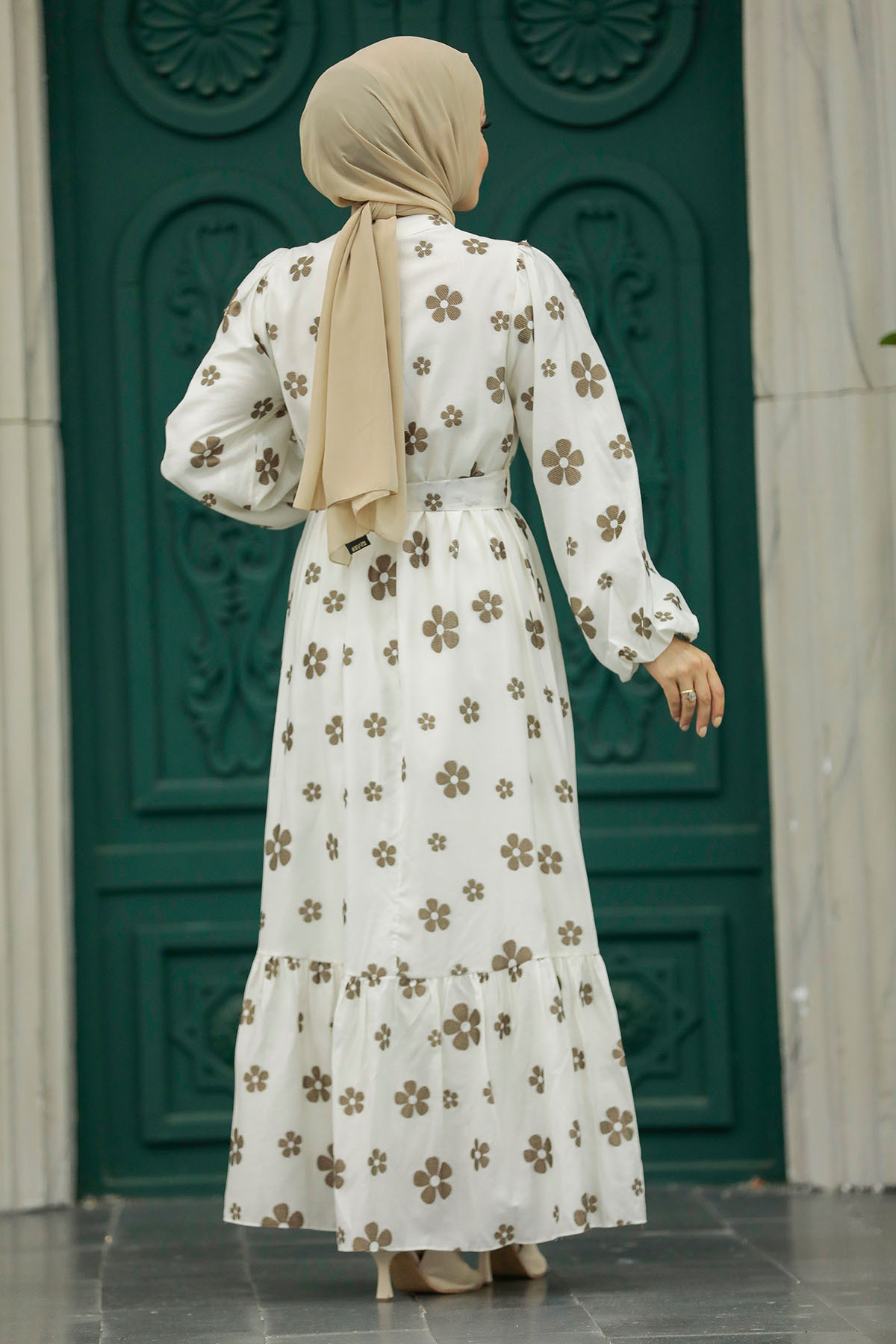 Modest Brown Floral Long Sleeve Dress 50251KH